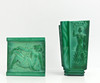 Vase, Höhe 12 cm Flasche, Höhe 8,5 cm Schale, ca. 7,5 x 4,5 cm, Höhe 2 cm Teller, ca. 9 x 9 cm.
