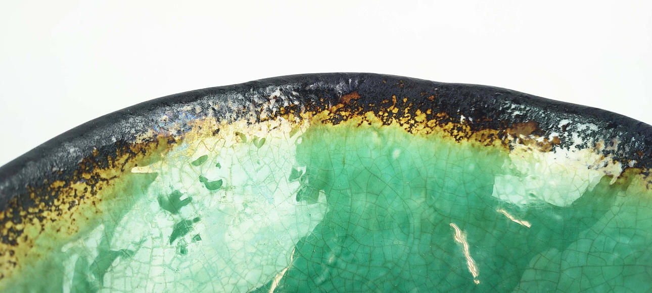 mit einer grünen Craqueléglasur. 25 cm x 21 cm (4).