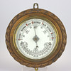 3913667. BAROMETER UND THERMOMETER, geschliffene Eiche in Form eines Seilmusters, emailliertes Zifferblatt, facettiertes Glas, wahrscheinlich England, 19. Jahrhundert.