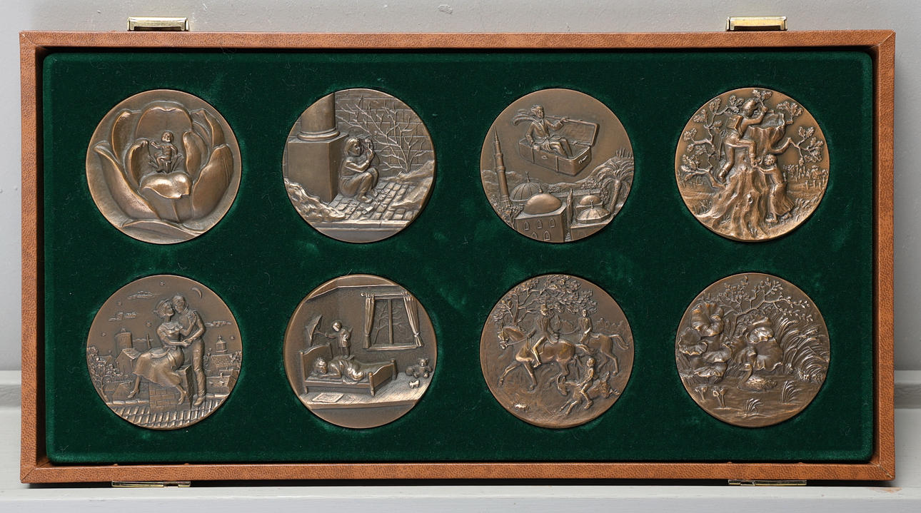 MEDAILLEN. Acht bronzene, HC Andersens Märchen.