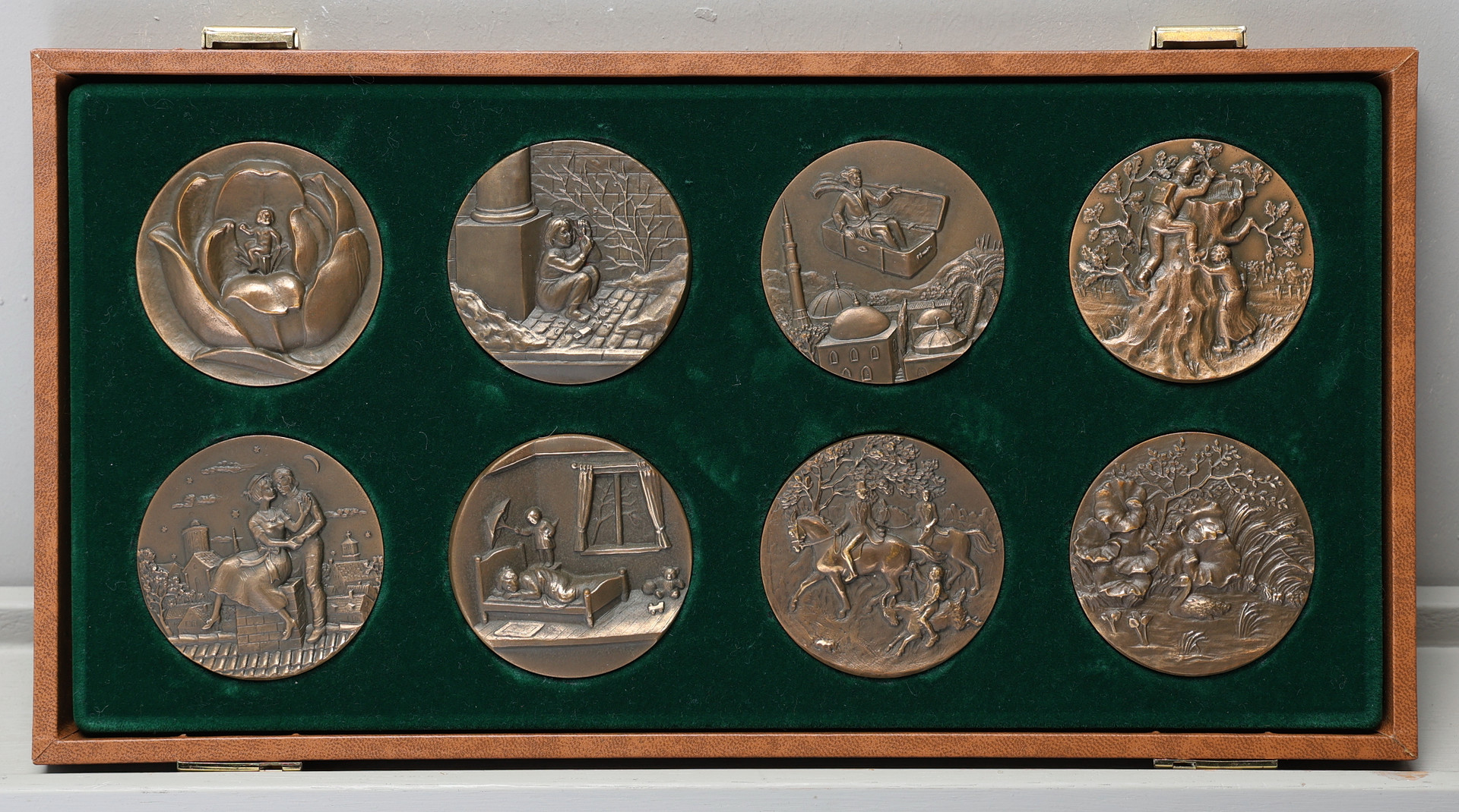3914574. MEDAILLEN. Acht bronzene, HC Andersens Märchen.