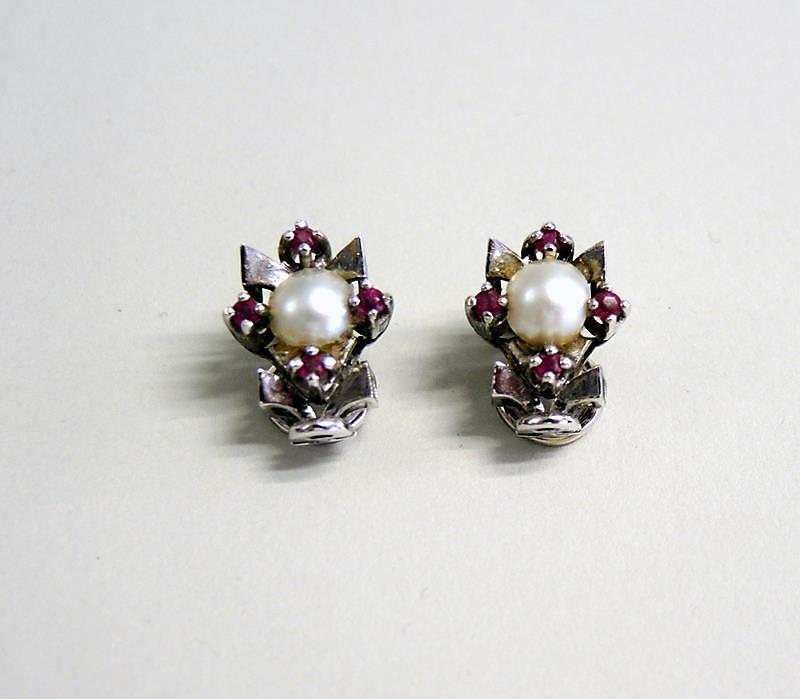 391734. PAAR OHRCLIPS mit Perlen und Rubinen.