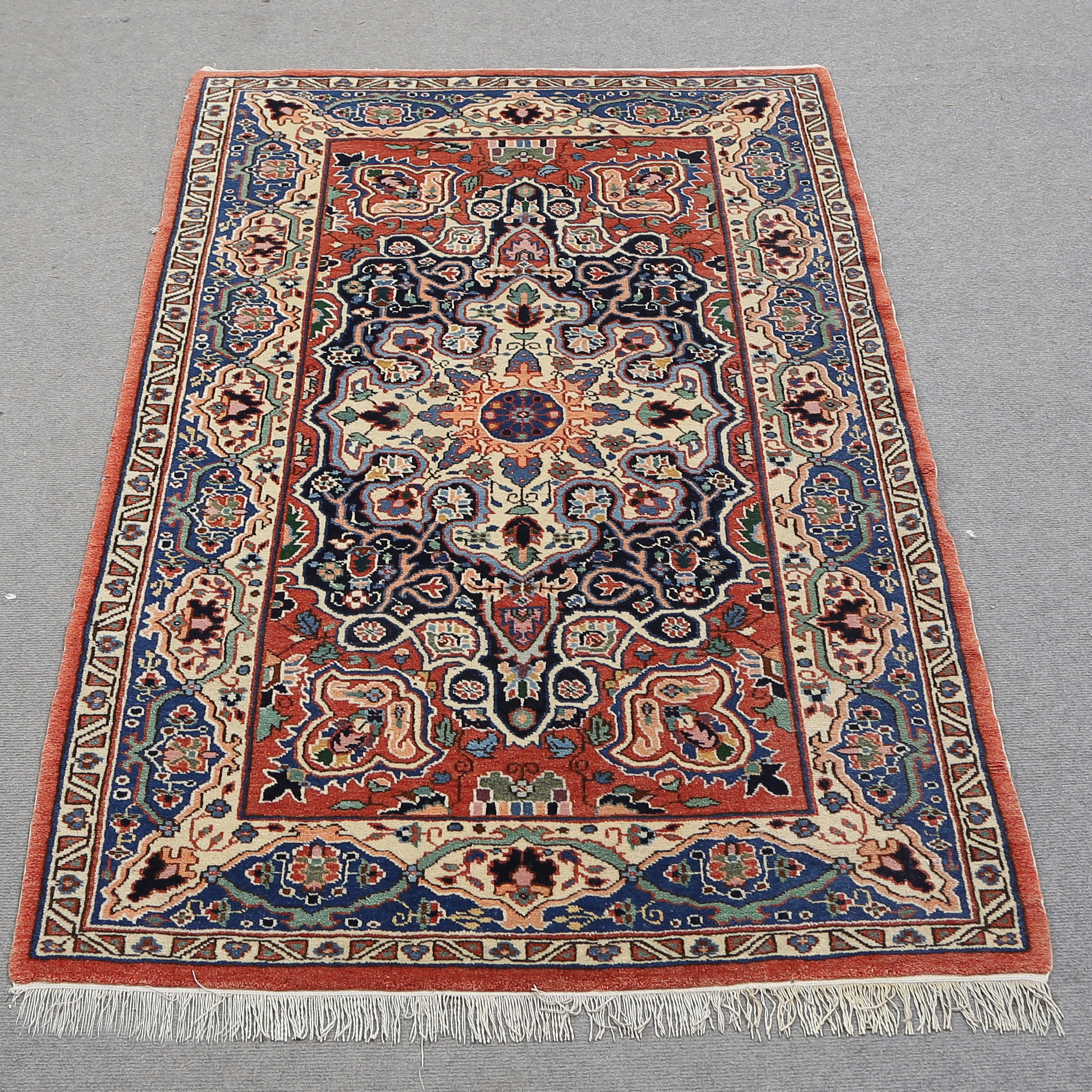 3921751. ECHTER TEPPICH, ROSTFARBEN, BLAU, BEIGE.