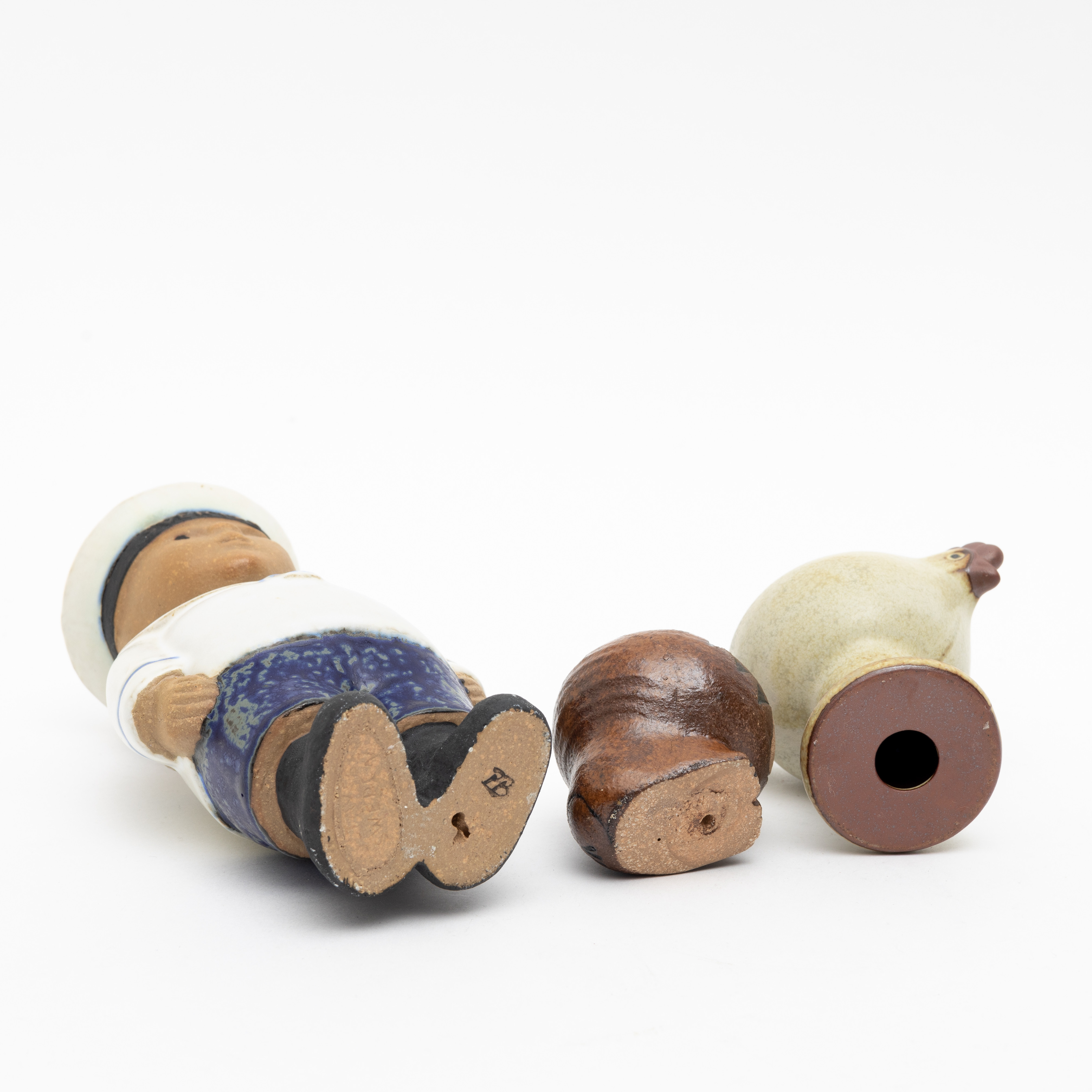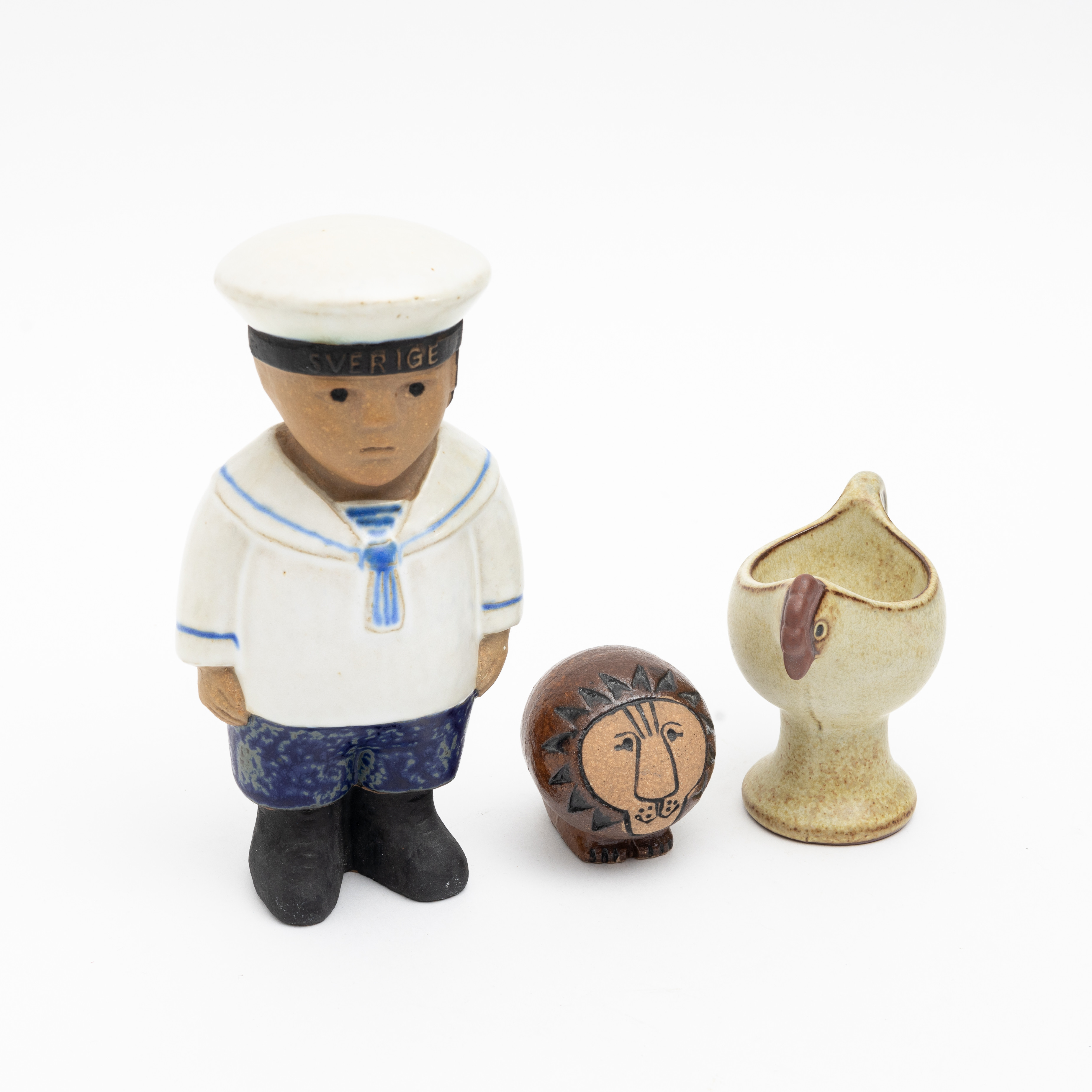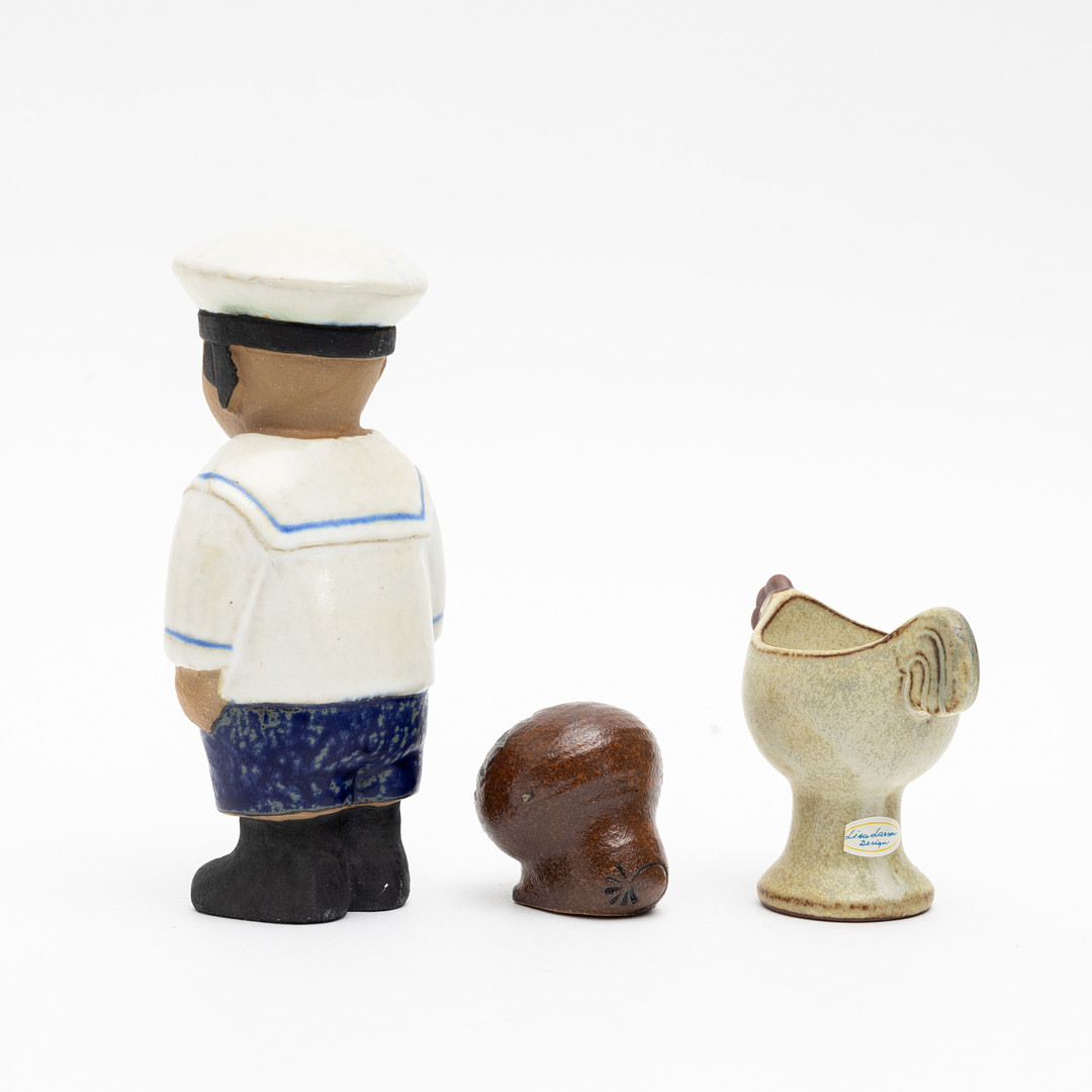 3922031. LISA LARSON. Figuren, 2 Stück und Eierbecher, Steinzeug, Gustavsberg.