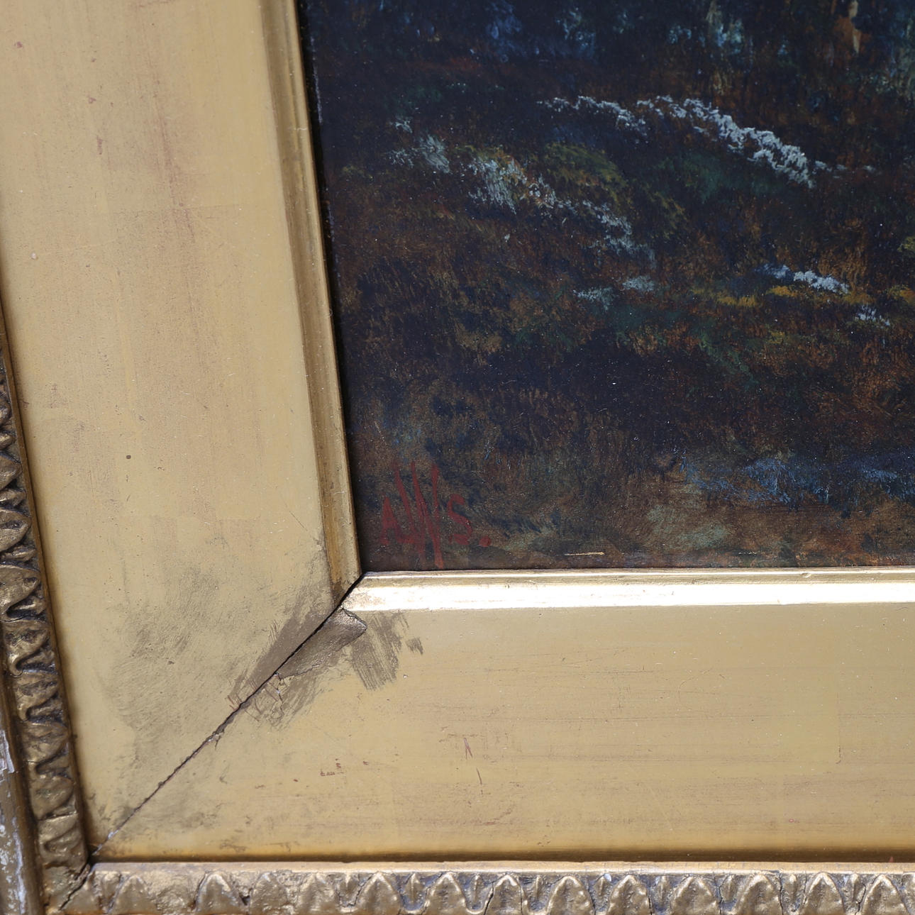 OIDENTIFIERAD KONSTNÄR. Landschaft. Öl auf Karton, signiert AWS.
