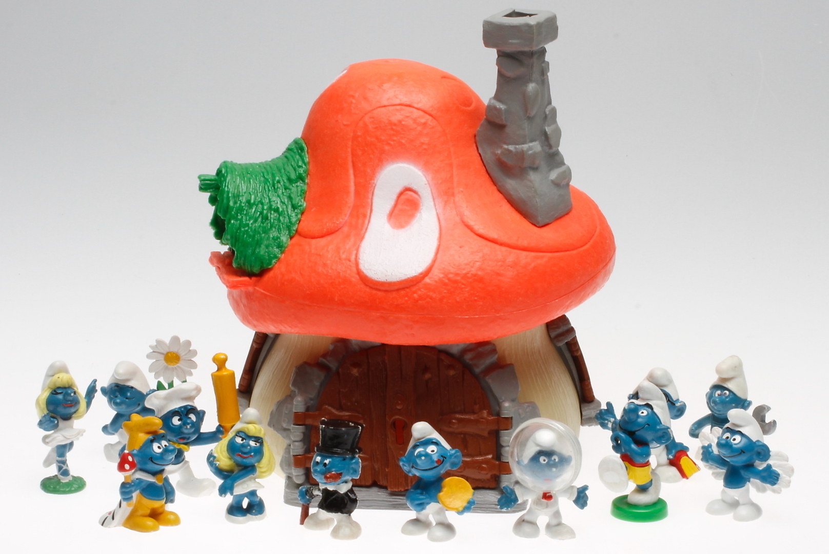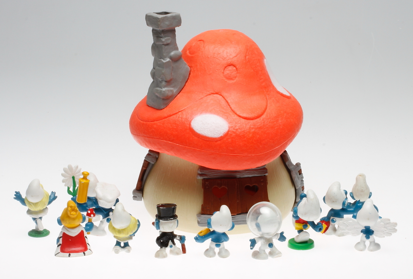 392849. Schlümpfe, 12 Stück und HAUS, Peyo, Bully.