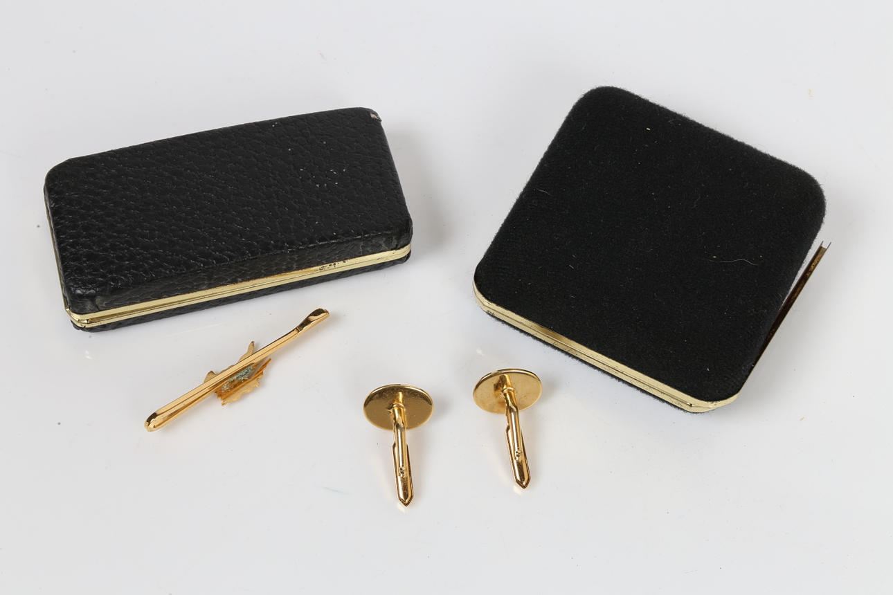 alle mit originalen Boxen von Burberry of London, vergoldet, Krawattennadel 6 cm breit.