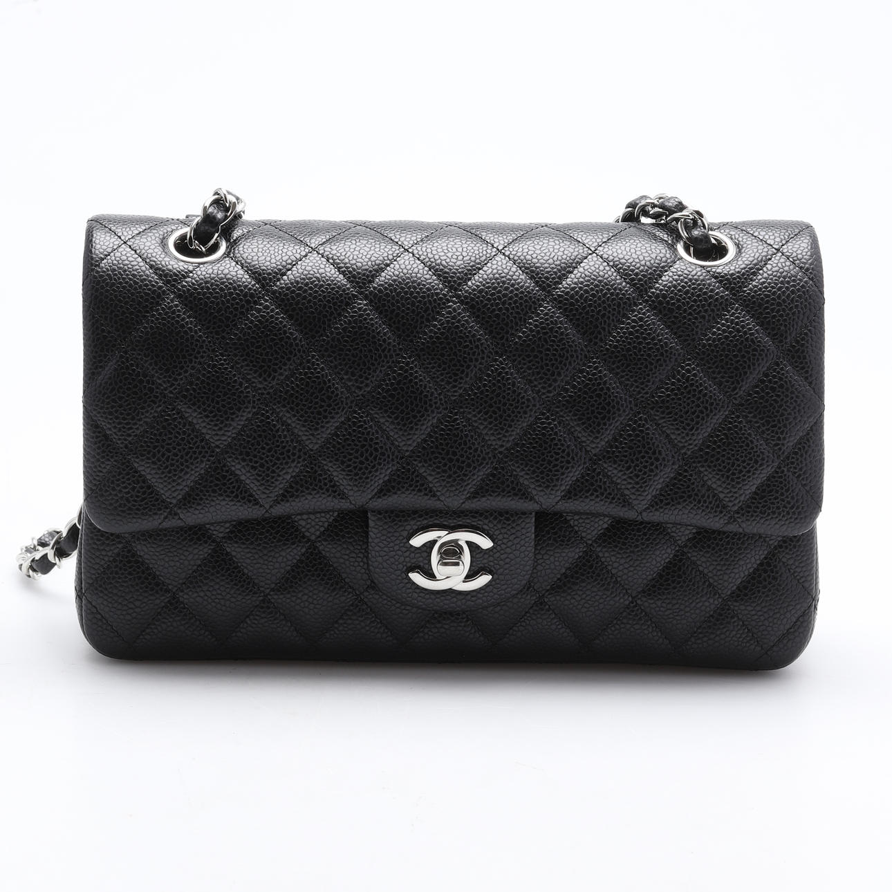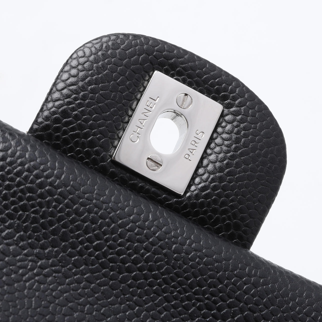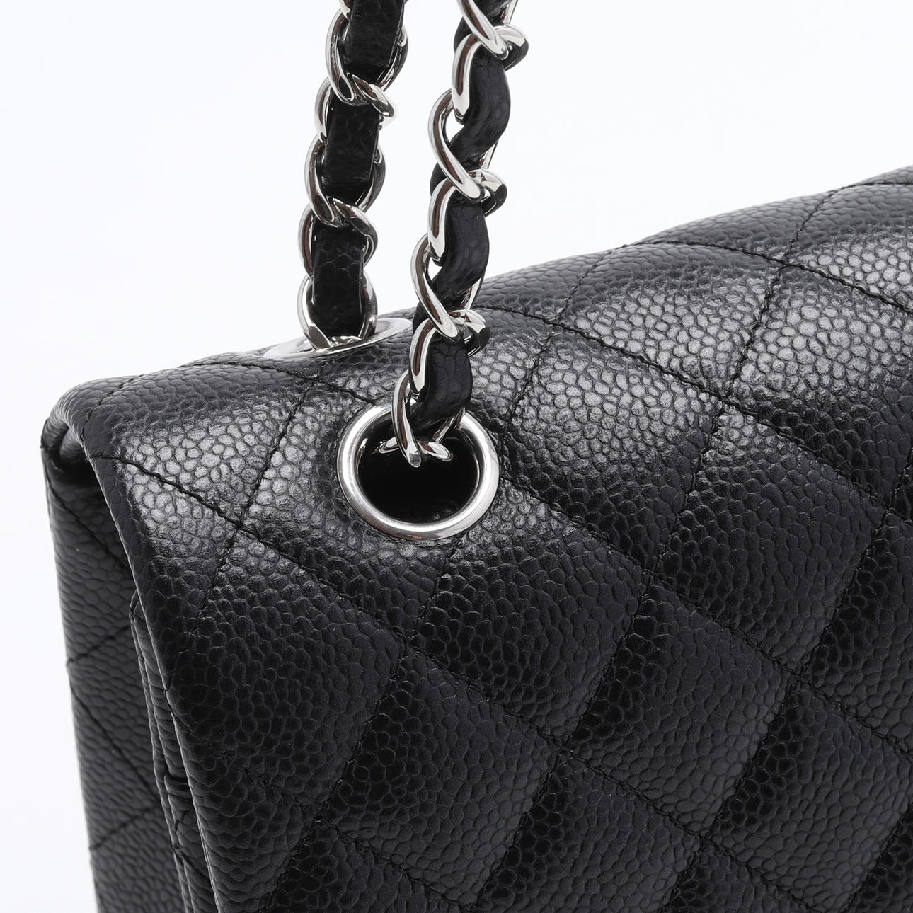 CHANEL. Tasche, „Classic Double Flap Bag Medium“, Kaviarleder.
