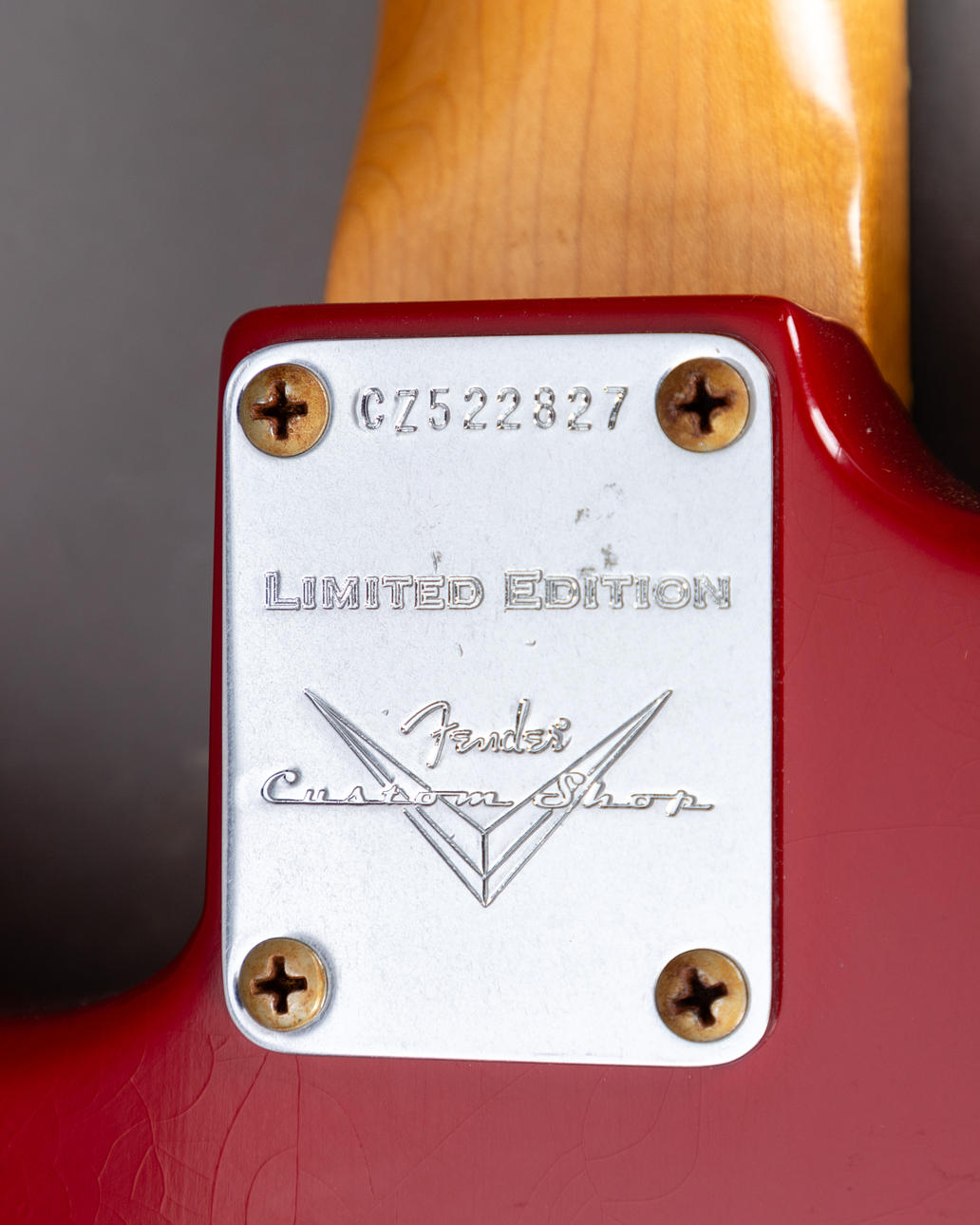 Fender Stratocaster E-Gitarre. Custom Shop-Gitarre, 2005 gefertigt. Ausgestattet mit einem synchronisierten Tremolo-System. Griffbrett aus Ahorn und ostindischen Palisander. Nummeriert: CZ522827.