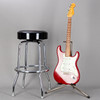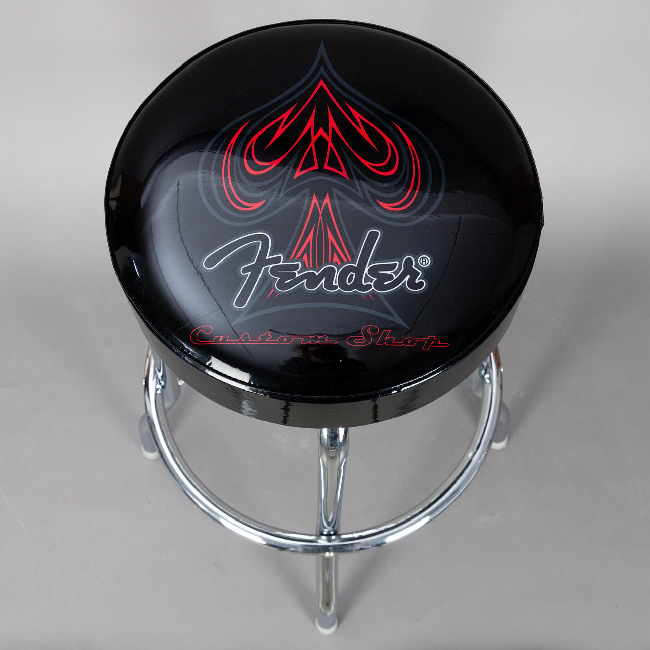 Hocker mit Fußablage und aufgepolstertem Sitz mit "Fender Custom Shop" Druck auf der Sitzoberfläche. ca. Sh 76 cm