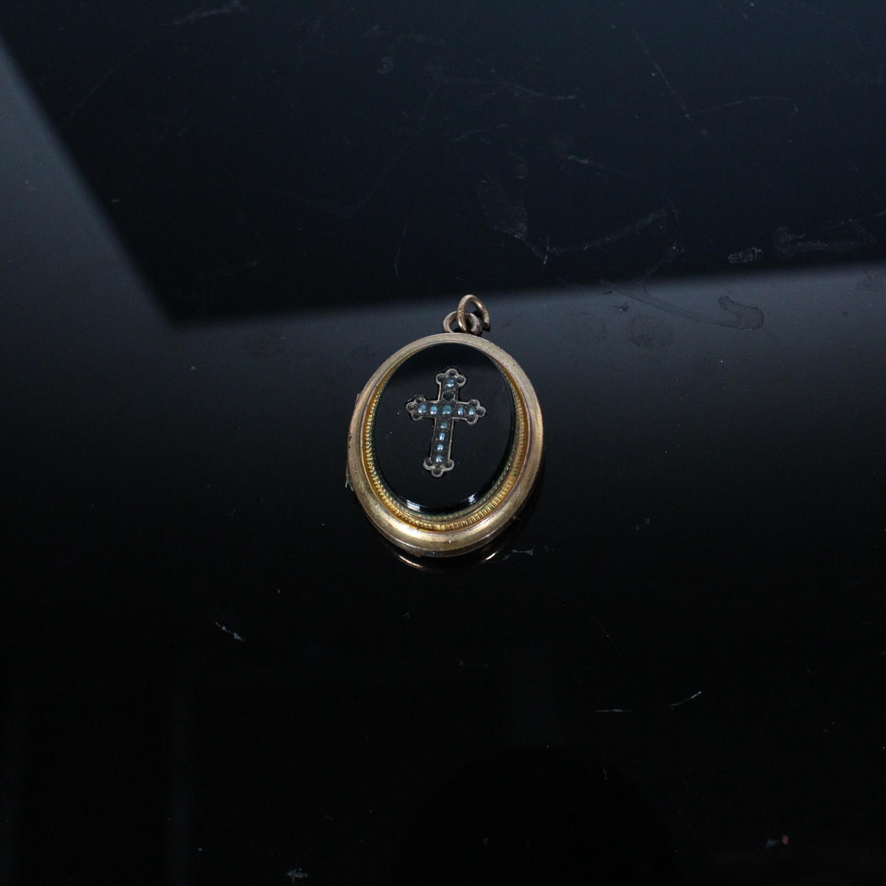 Biedermeier Anhänger Trauermedaillon, Onyx.