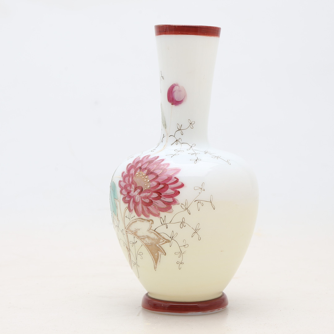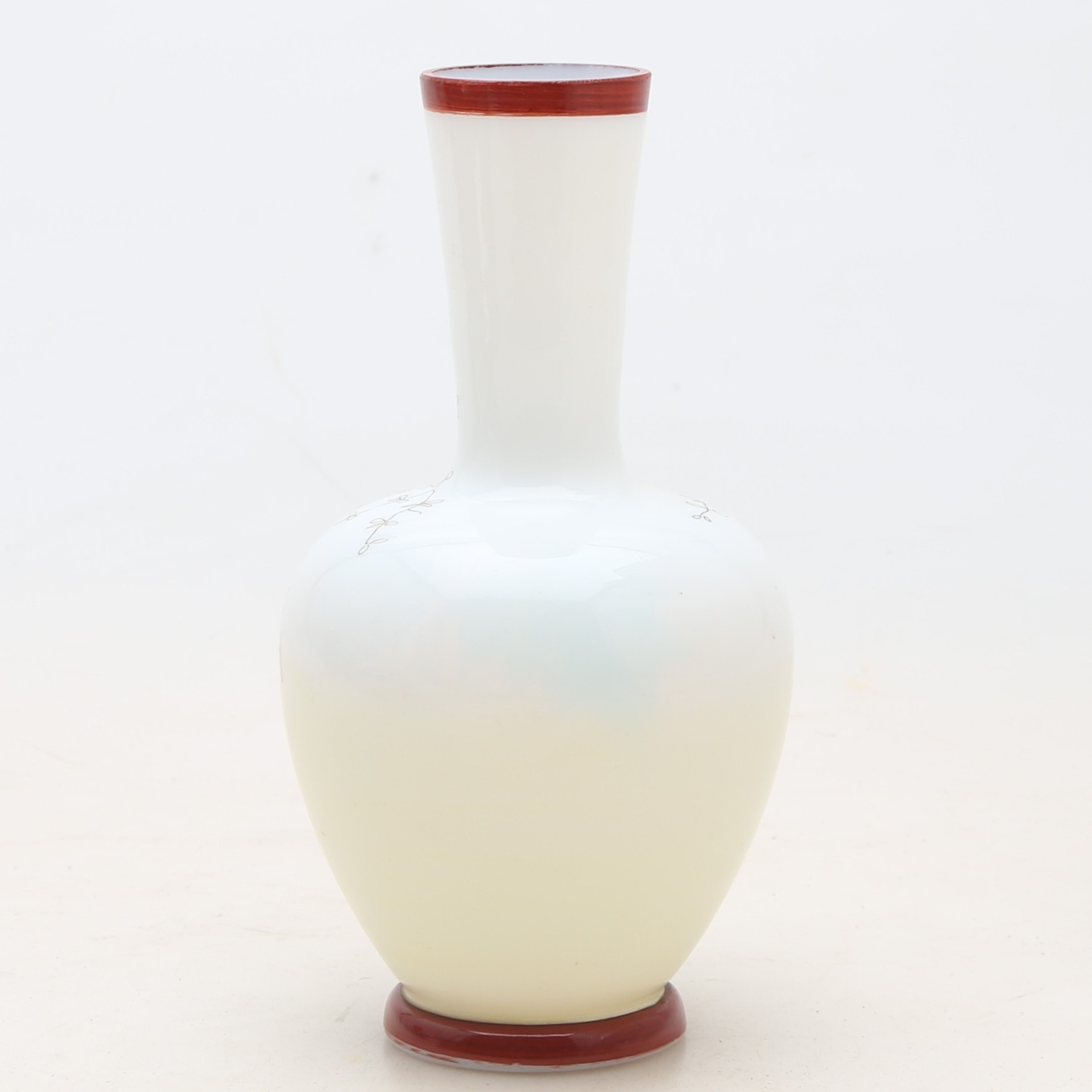 3941118. Vase aus emailliertem Eierschalen-Opalglas.