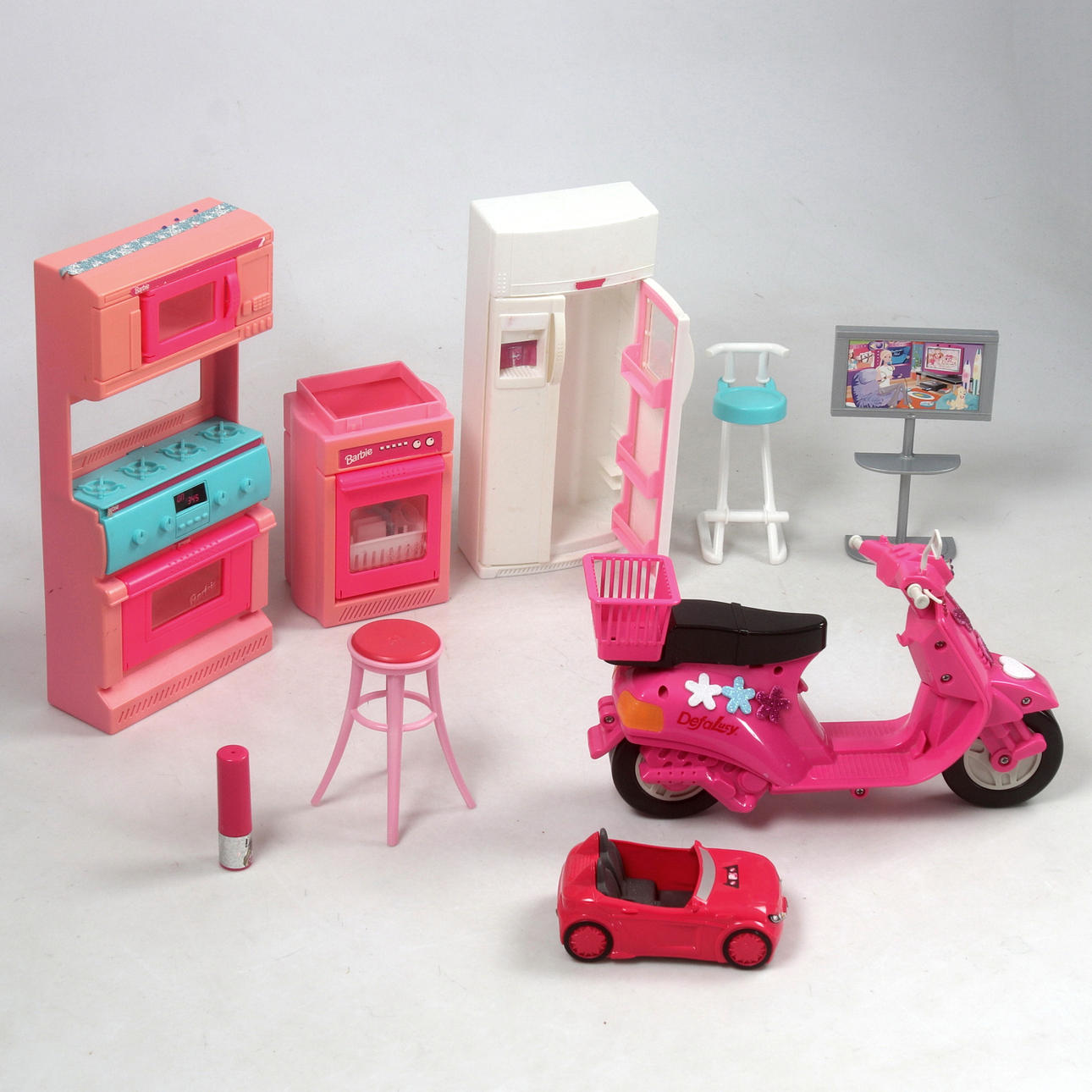 BARBIE OBJECTS von Matell, inkl. Roller, Herd, Kühlschrank, 19/2000.