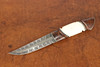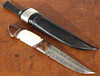 Die Gesamtlänge des Messers beträgt ca. 24,5 cm, gemusterte Damastklinge mit Signatur „MS“, Schaft aus Holz und Horn, Lederscheide mit silbernen Beschlägen und Signatur „FREJD 2010".