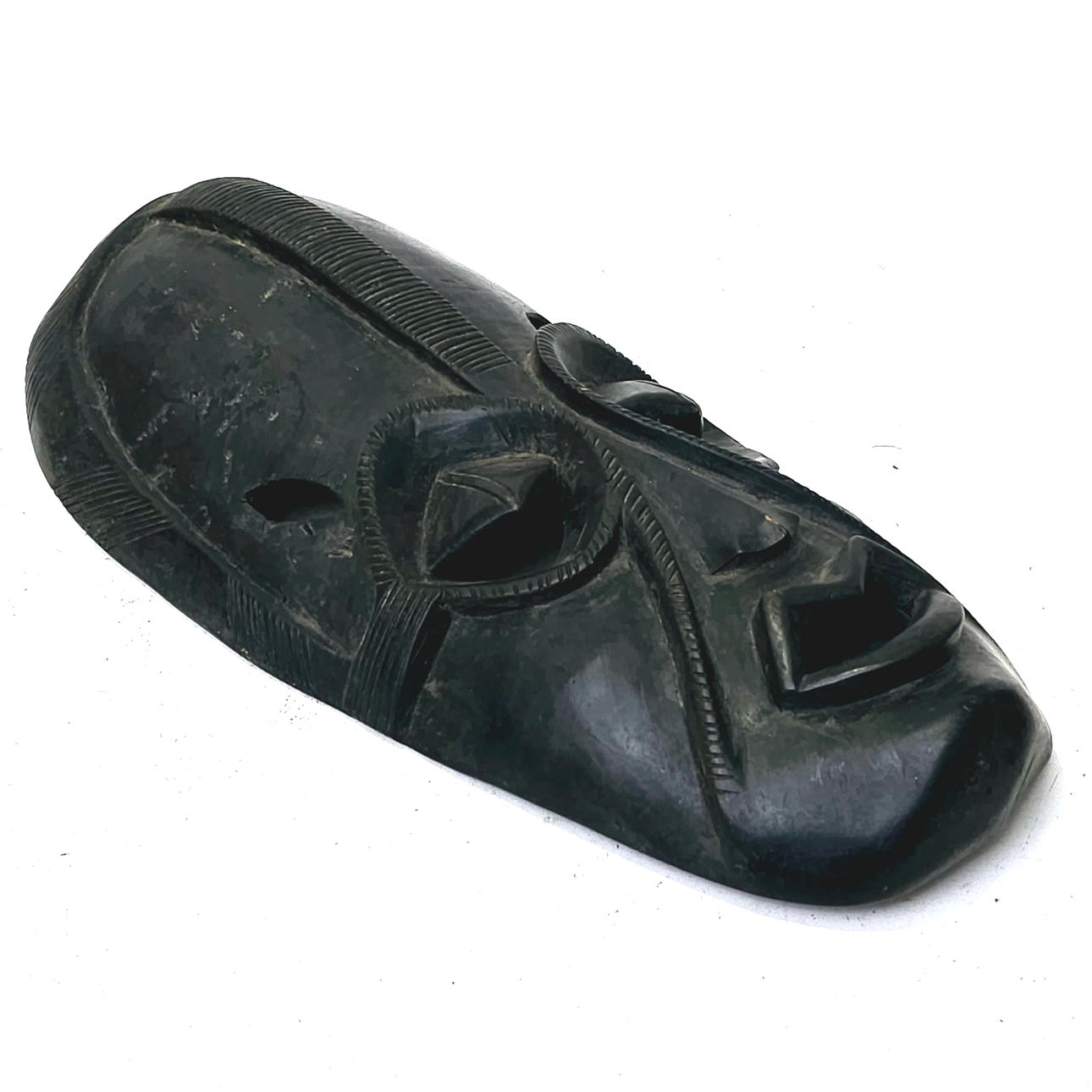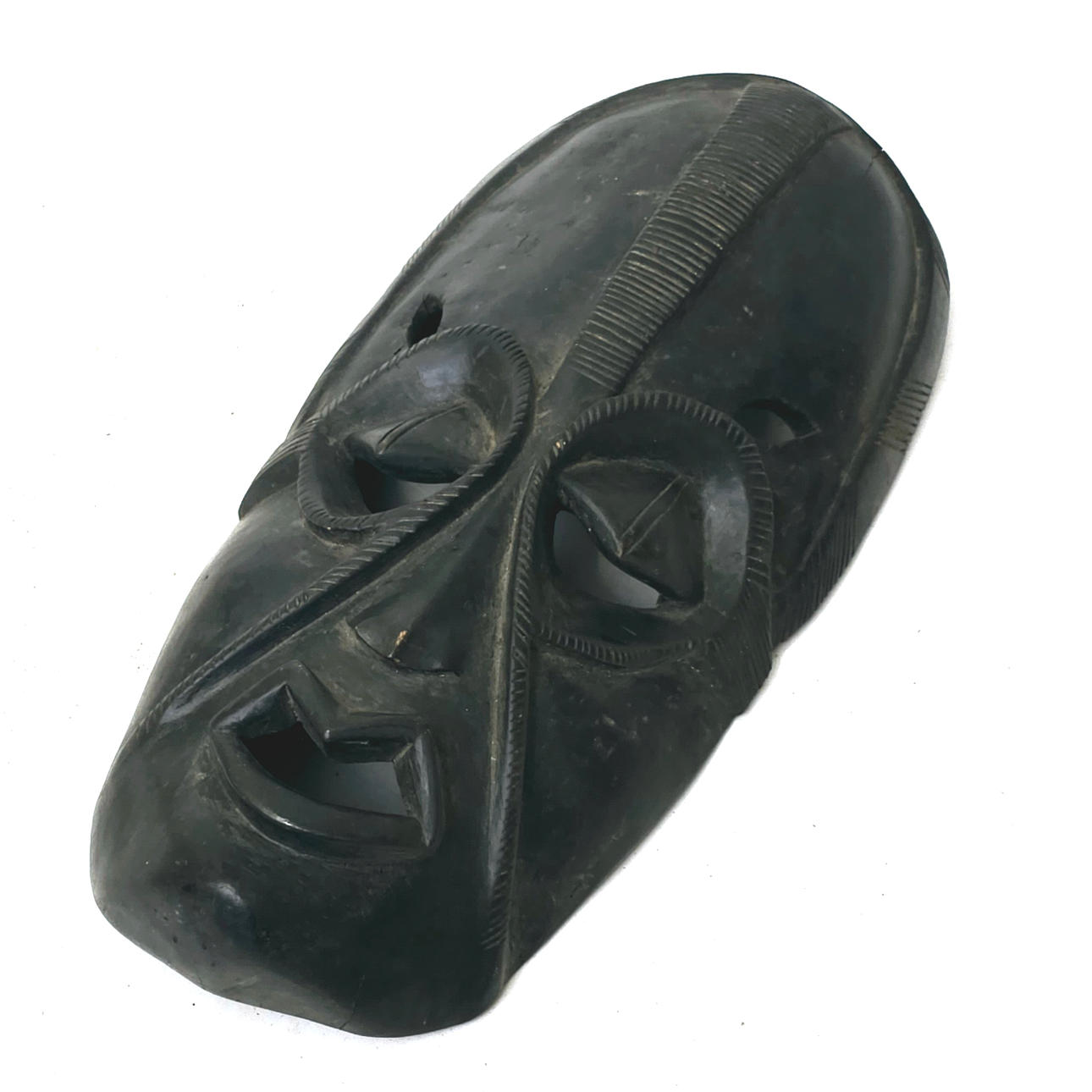 IN EBENHOLZ GESCHNITZTE AFRIKANISCHE MASKE.