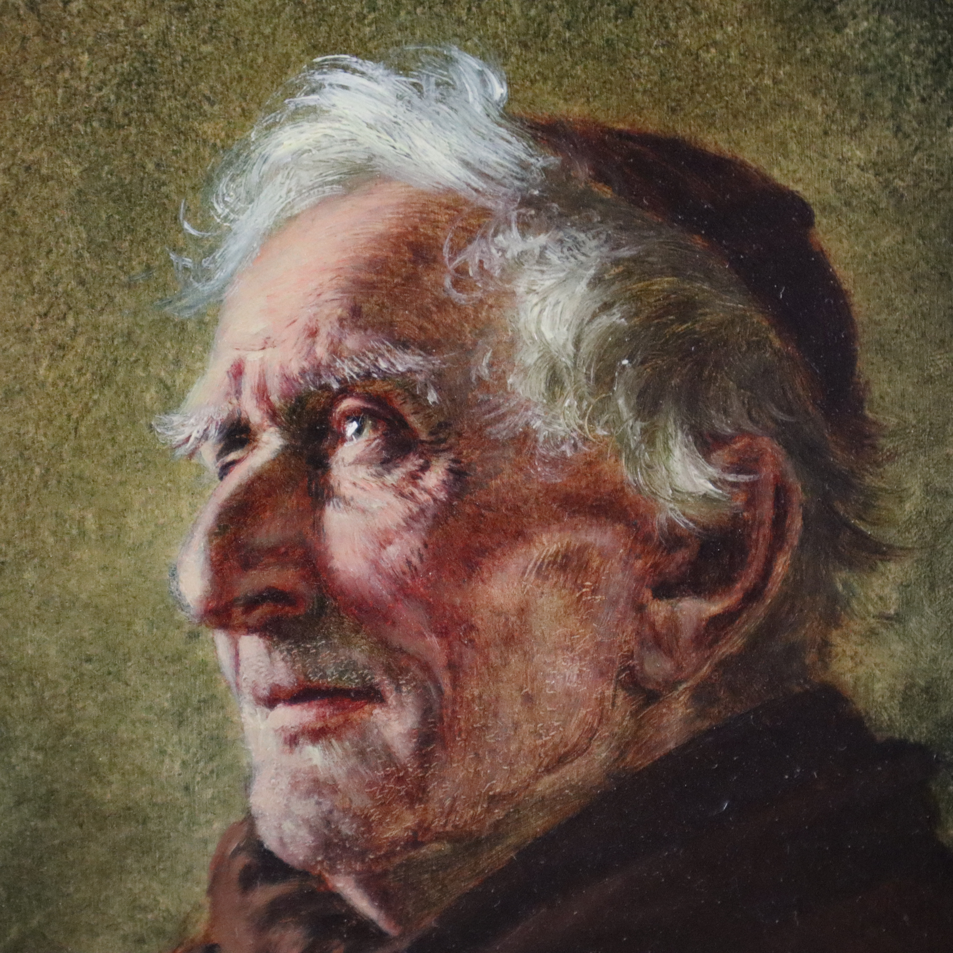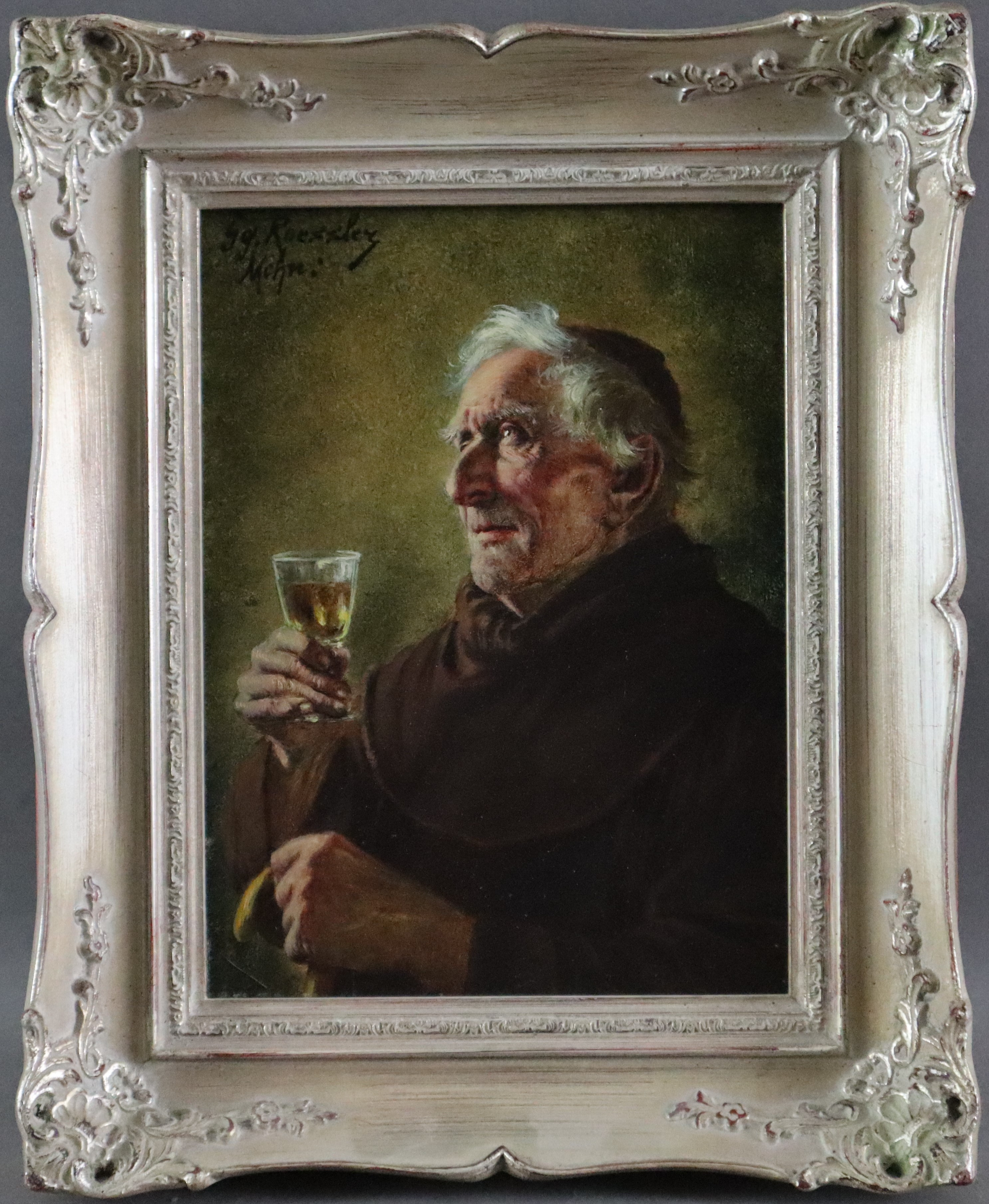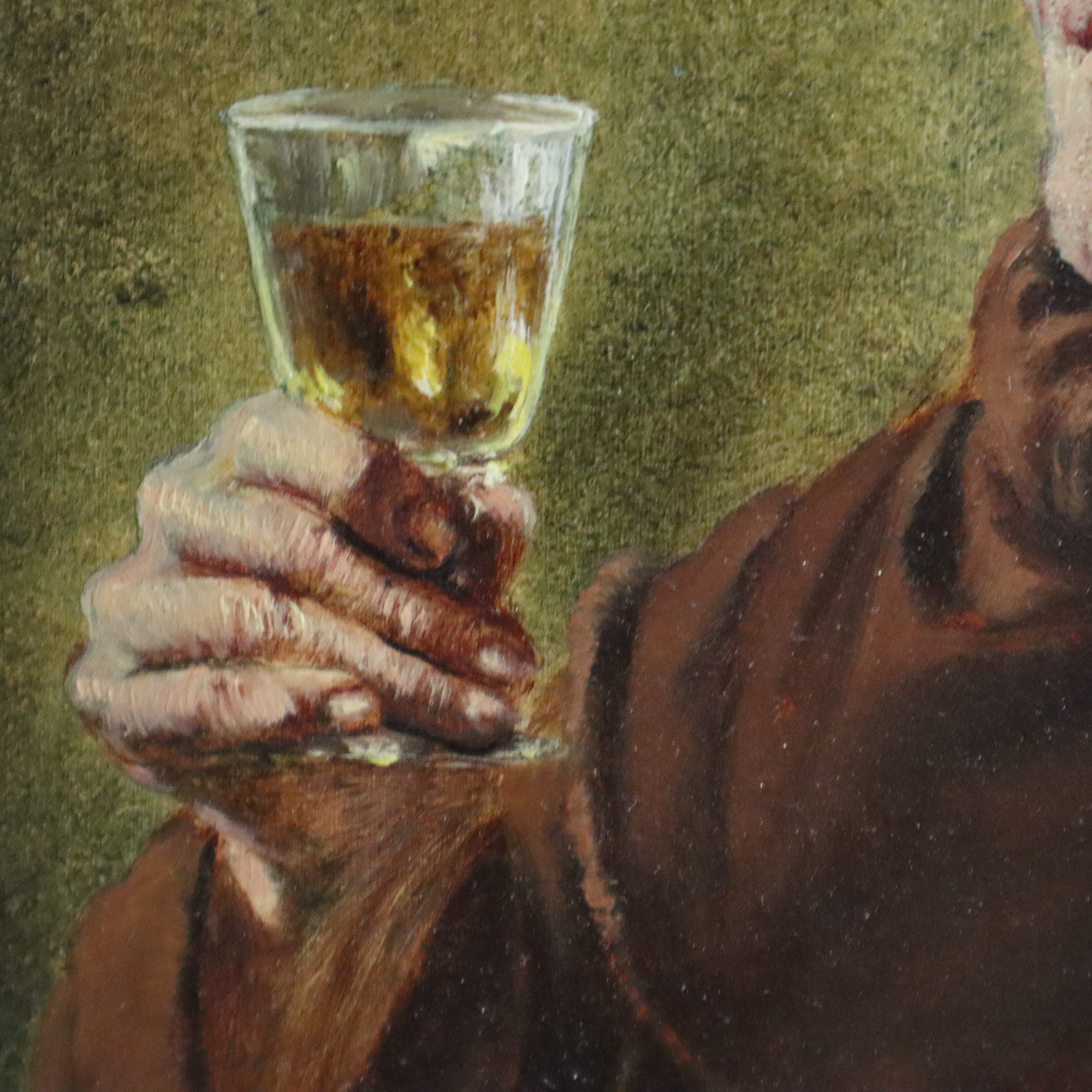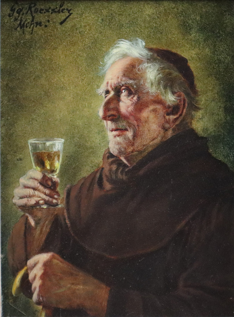 3947191. - ROESSLER, GEORG. - Mönch mit Weinglas, Öl auf Holzplatte.