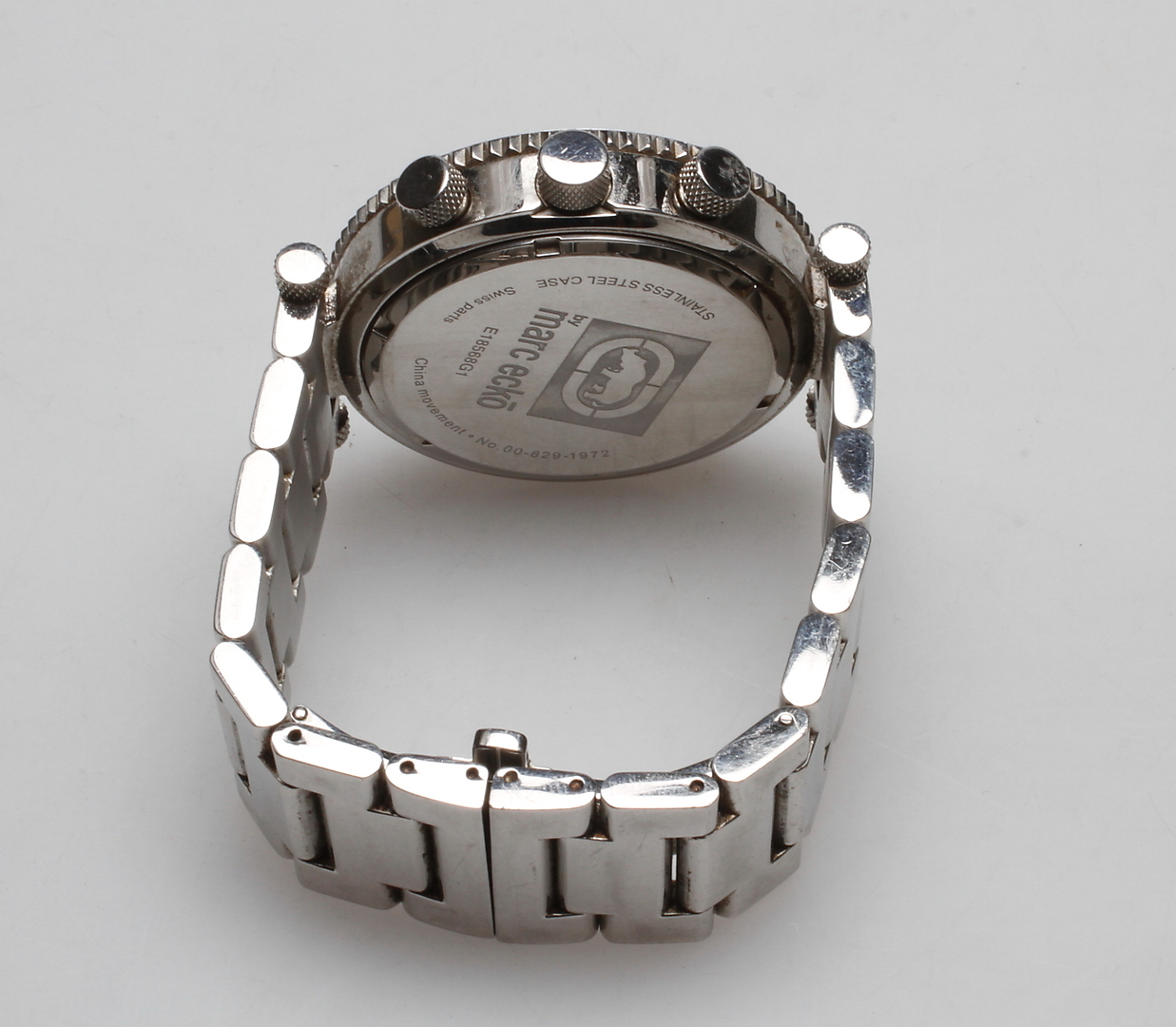 394884. ARMBANDUHR MARC ECKÖ, Stahl, Quarz.