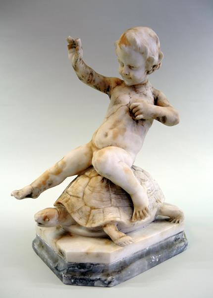 395156. MARMORSKULPTUR, Knabe auf einer Schildkröte.
