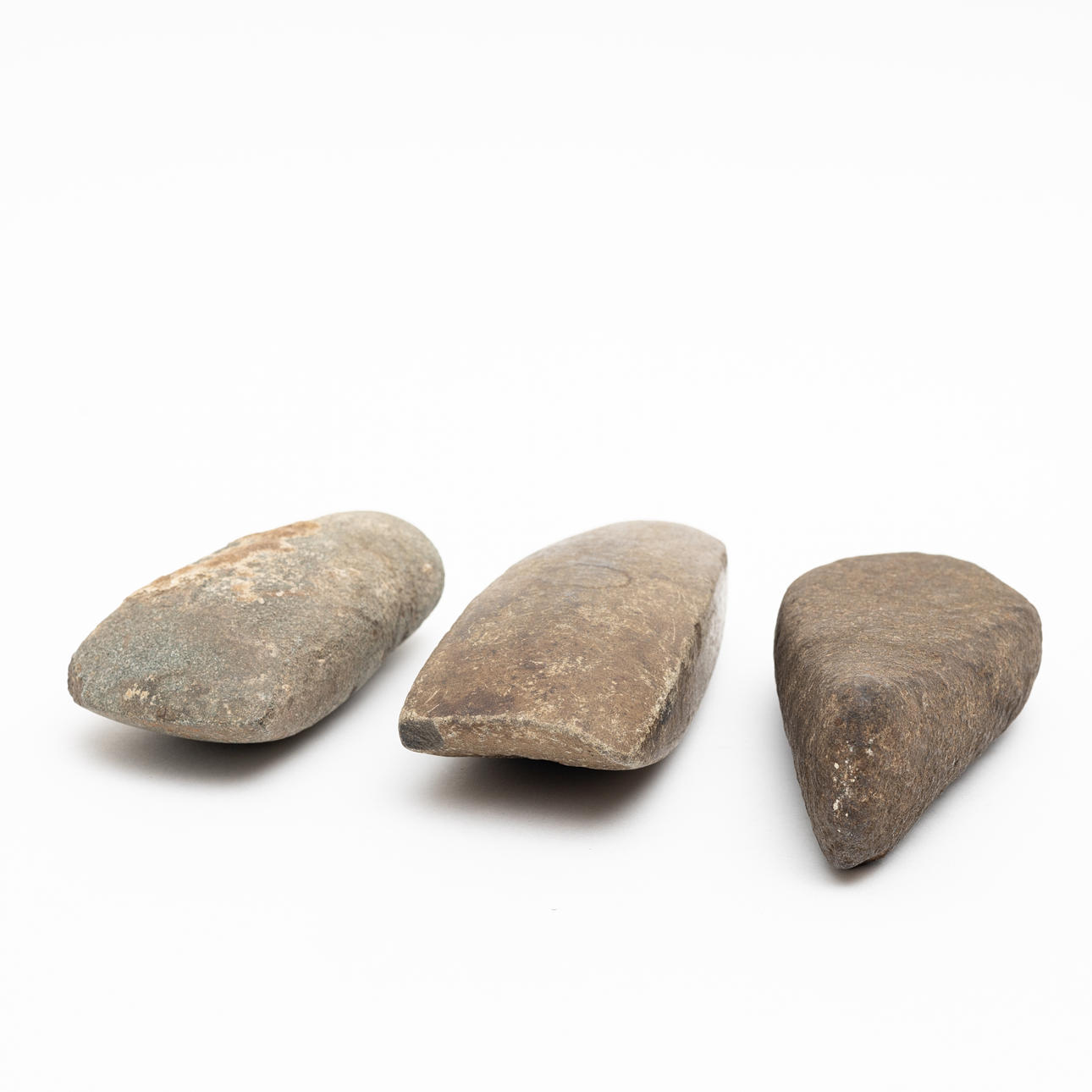 Ein Satz von 3 Steinäxten, verschiedene Steinarten.