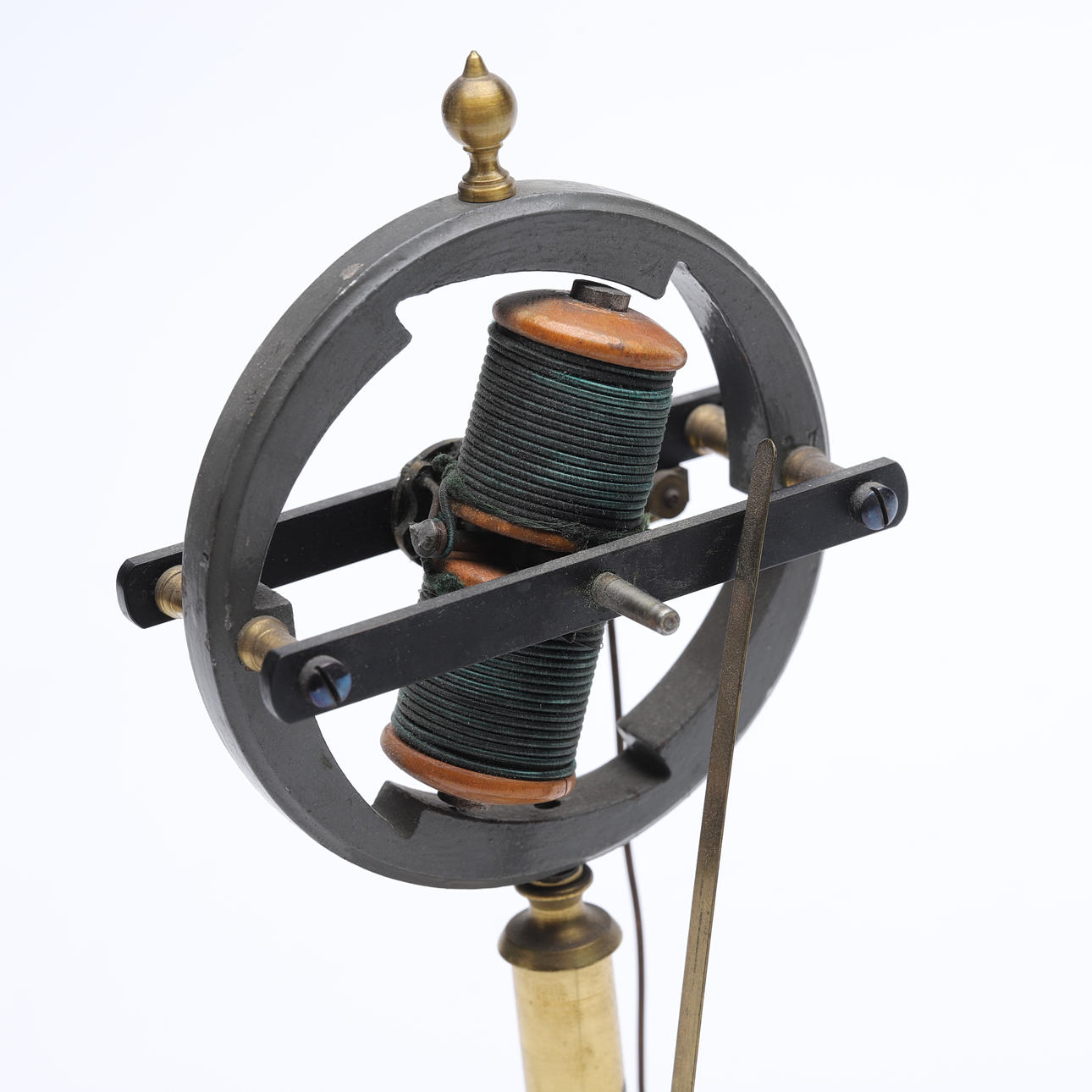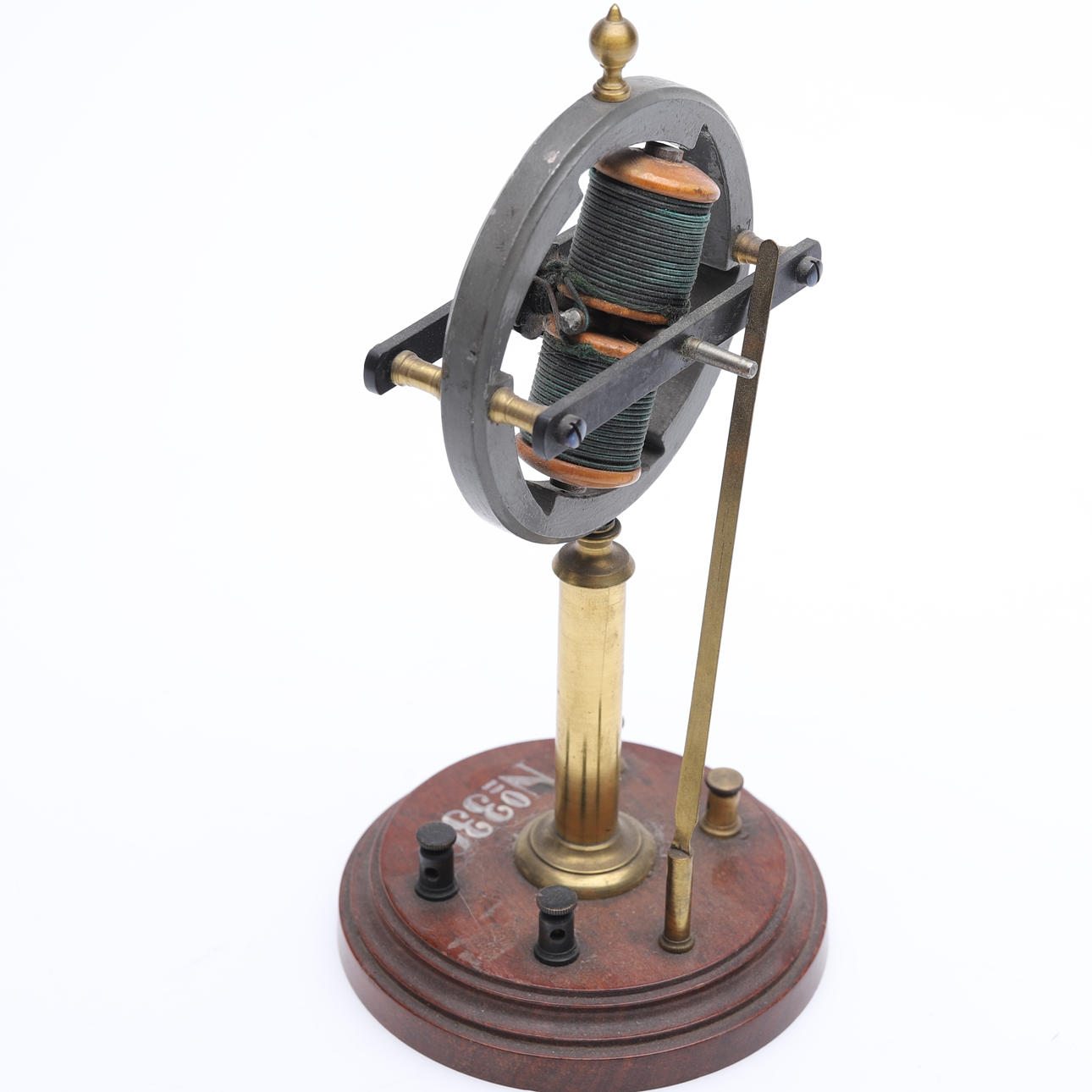 Eine runde Basis, auf der sich vier Anschlüsse befinden (zwei Paare unterschiedlicher Farbe), trägt eine Säule und einen versilberten Ring. Im Inneren des Weicheisenrings befinden sich rotierende elektromagnetische Spulen. Sechs Pole (die speziell konstruierten Stufen im Ring) setzen diesen Motor in Bewegung. Es war beabsichtigt, ein Geisslerrohr auf der Spindel dieses Instruments rotieren zu lassen. Dies hätte eine erstaunliche rotierende Lichtshow im Dunkeln erzeugt. Ein Klemmenpaar wäre für den Motor verwendet worden, das andere Paar, um die Röhre mit Hochspannungsstrom zu versorgen.