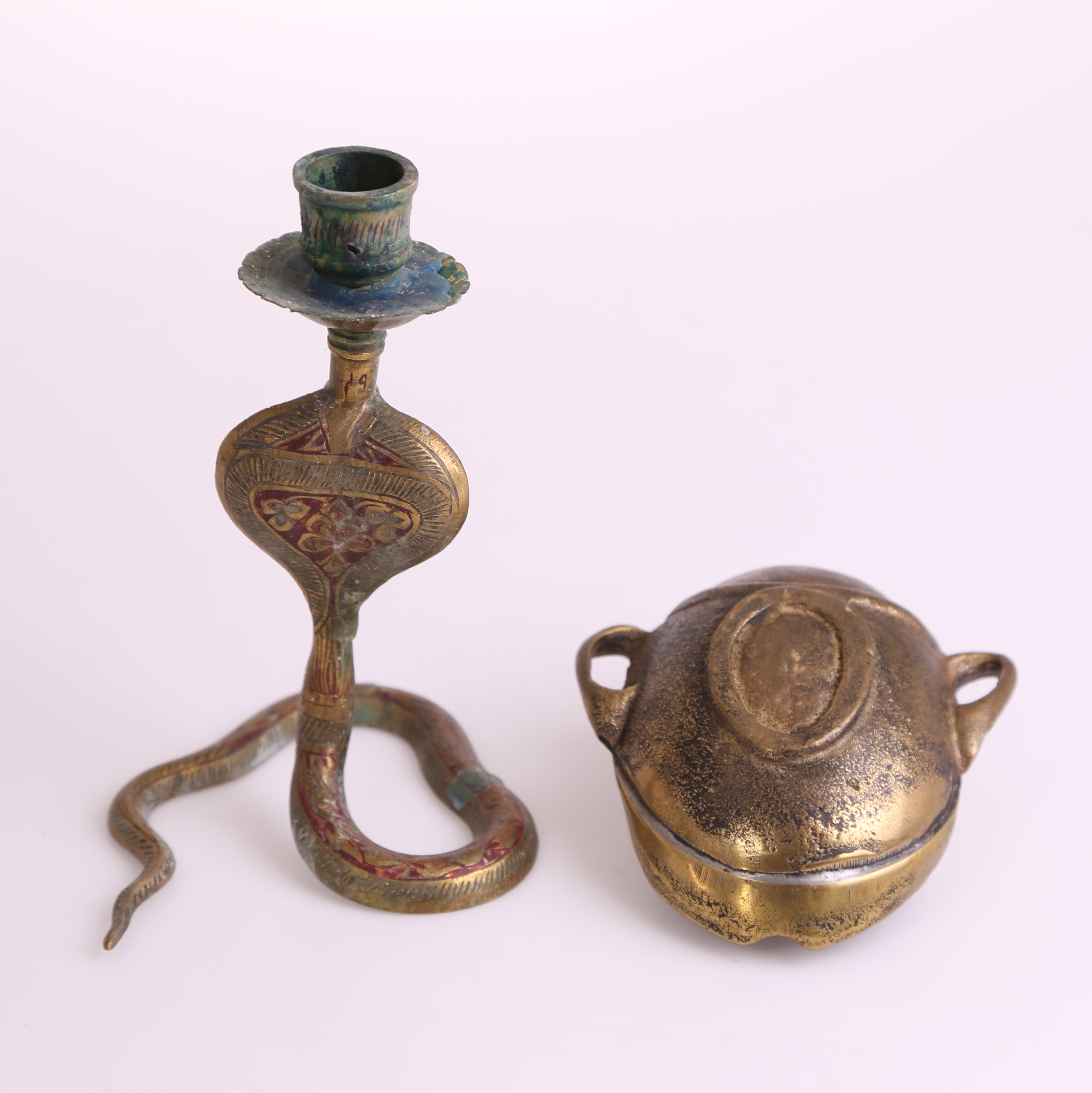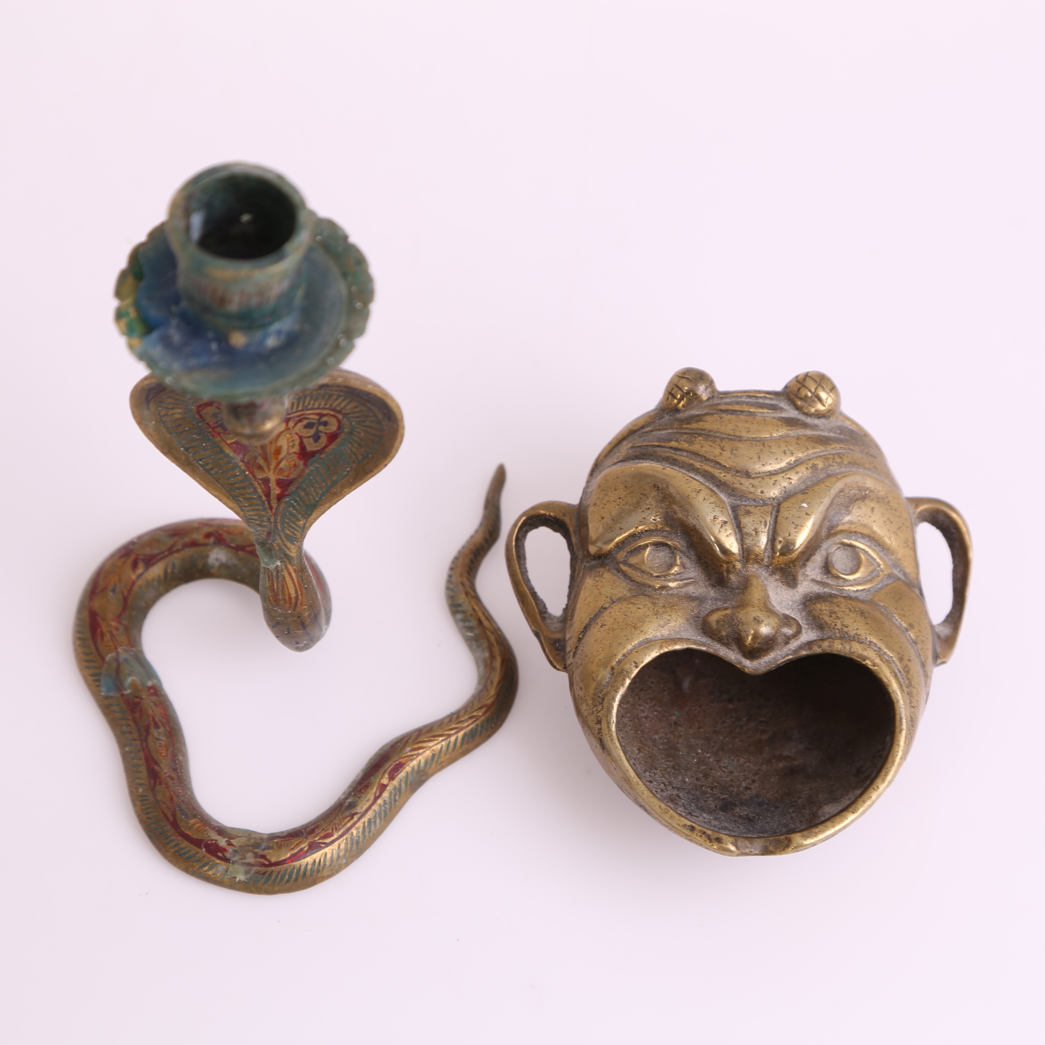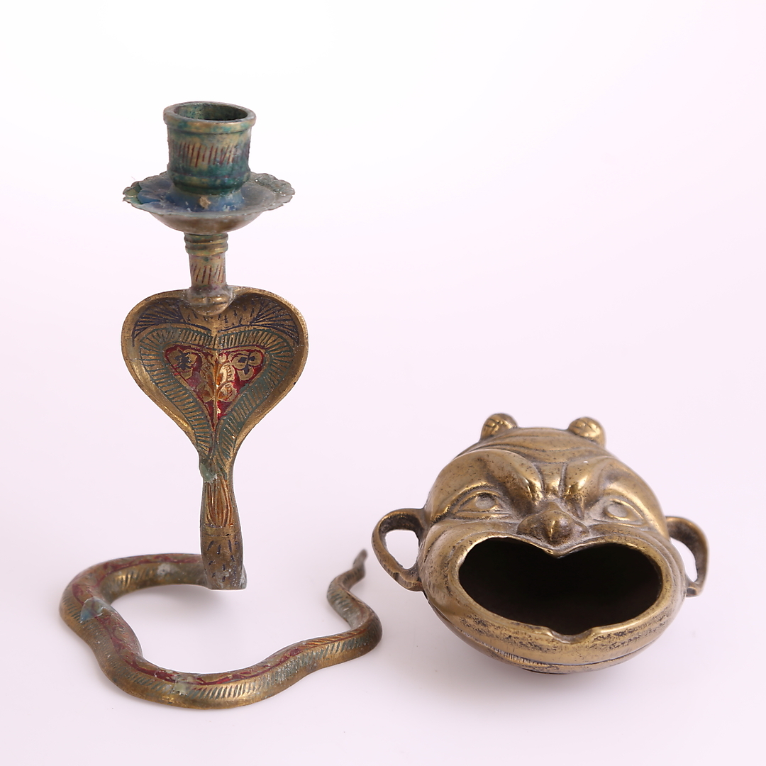 396146. KERZENHALTER, Messing + ASCHENBECHER, Messing: beide 1900er.