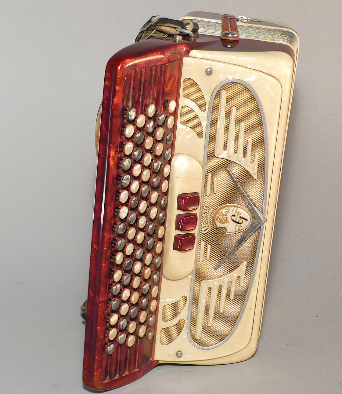 Knopfakkordeon mit Tasche.