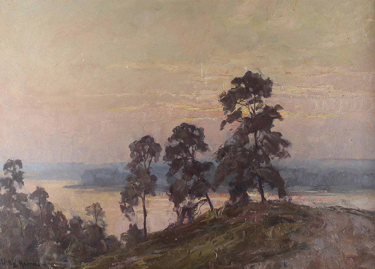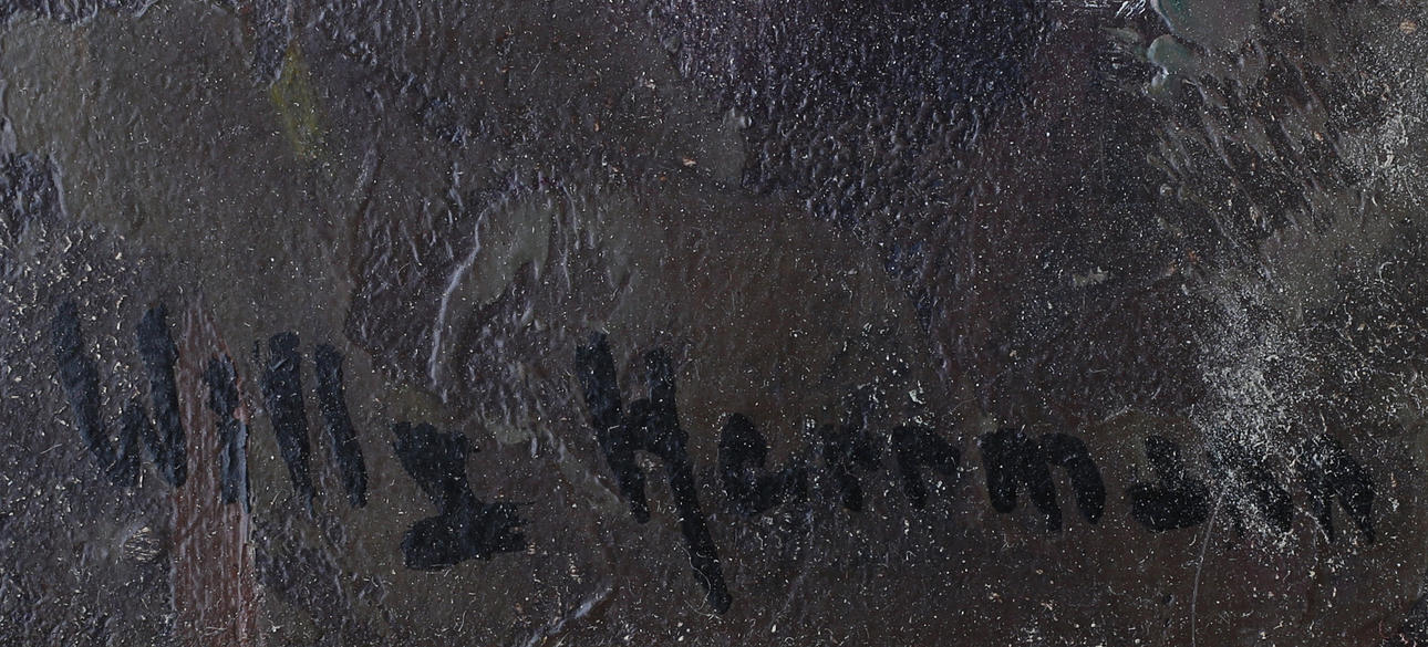 WILLY HERRMANN. Seenlandschaft, Öl auf Platte, signiert.