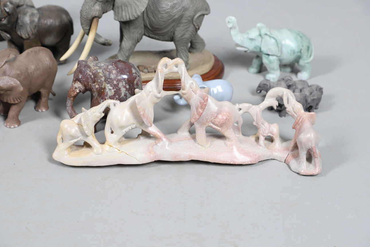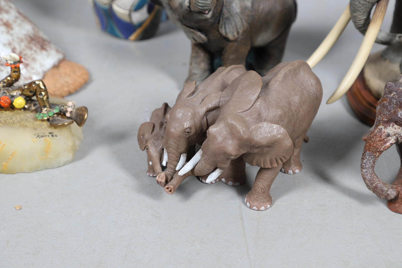 Ein gemischtes Los, darunter Figuren aus Land of the Dragons und Battle of the Dragons, Savannah Wildlife Collections Elephant und verschiedene andere Elefanten und Ornamente.