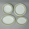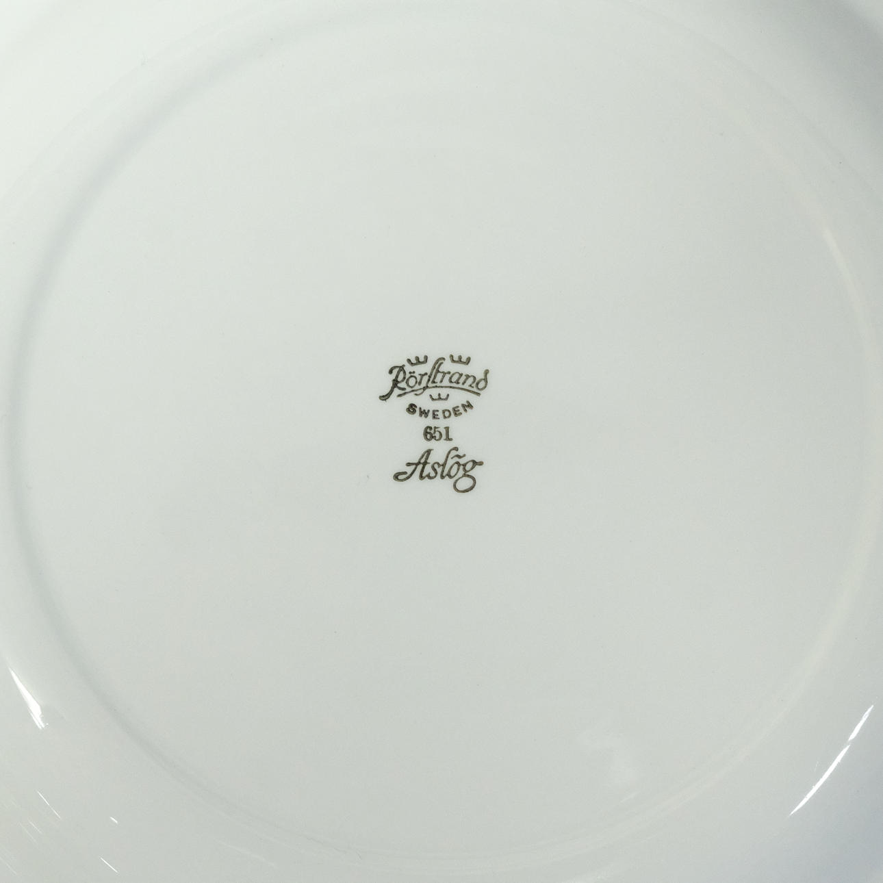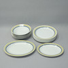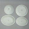 sechs Teller, Durchmesser 24 cm, sechs tiefe Teller, Durchmesser 20 cm und zwei Untertassen, Länge 23 und 28 cm.