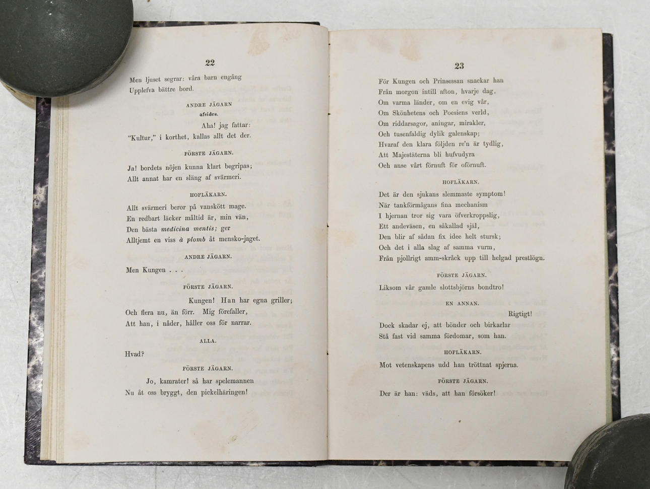 Die erste Ausgabe wurde 1824-27 veröffentlicht. Dies ist die vollständig überarbeitete Version, die die ersten beiden Teile der 1854-63 erschienenen Ausgabe von Atterboms Gesammelten Gedichten bildete und insgesamt sechs Teile umfasste. Diese wurden auch separat verkauft. Die Serientitelblätter wurden in diesen Fällen am häufigsten entfernt. Die überarbeitete Version widmet Atterbom seiner verstorbenen Frau Ebba af Ekenstam mit dem Gedicht „Till den hädangångna“. Er selbst starb 1855 und dies ist das letzte Werk, das zu seinen Lebzeiten veröffentlicht wurde.