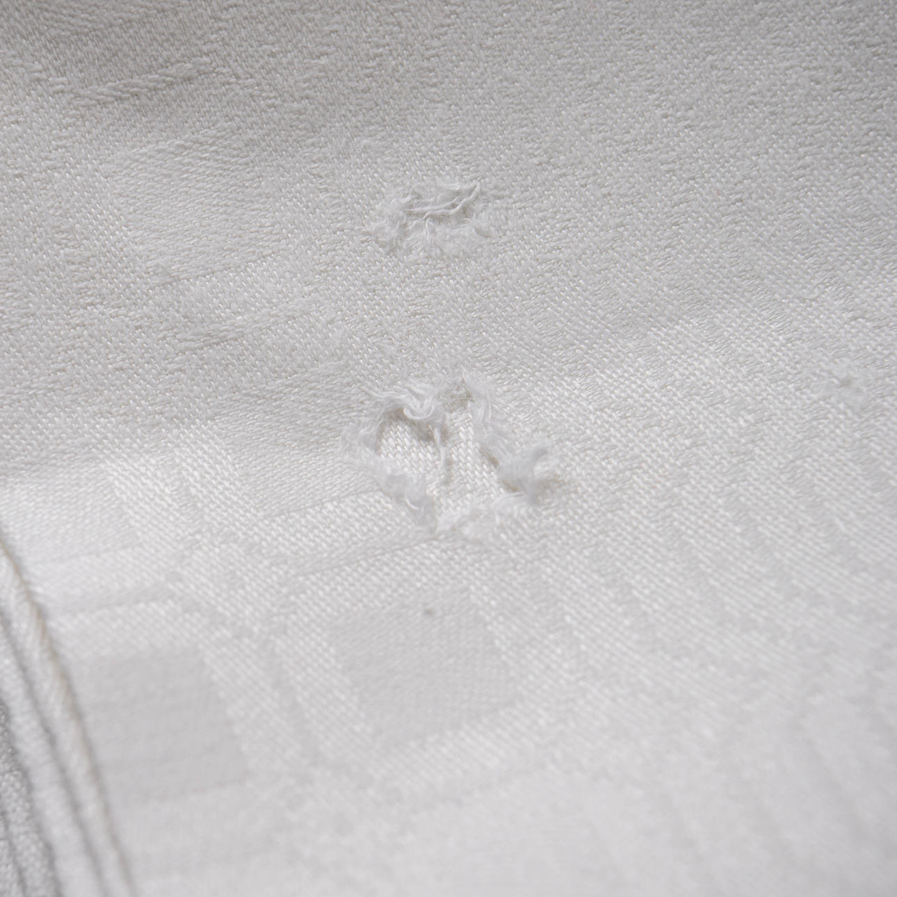 Nicht vollständig überprüft. Verschleiß und Abnutzung. Es kann zu Fleckenbildung kommen. Einzelne Serviette mit Löchern.