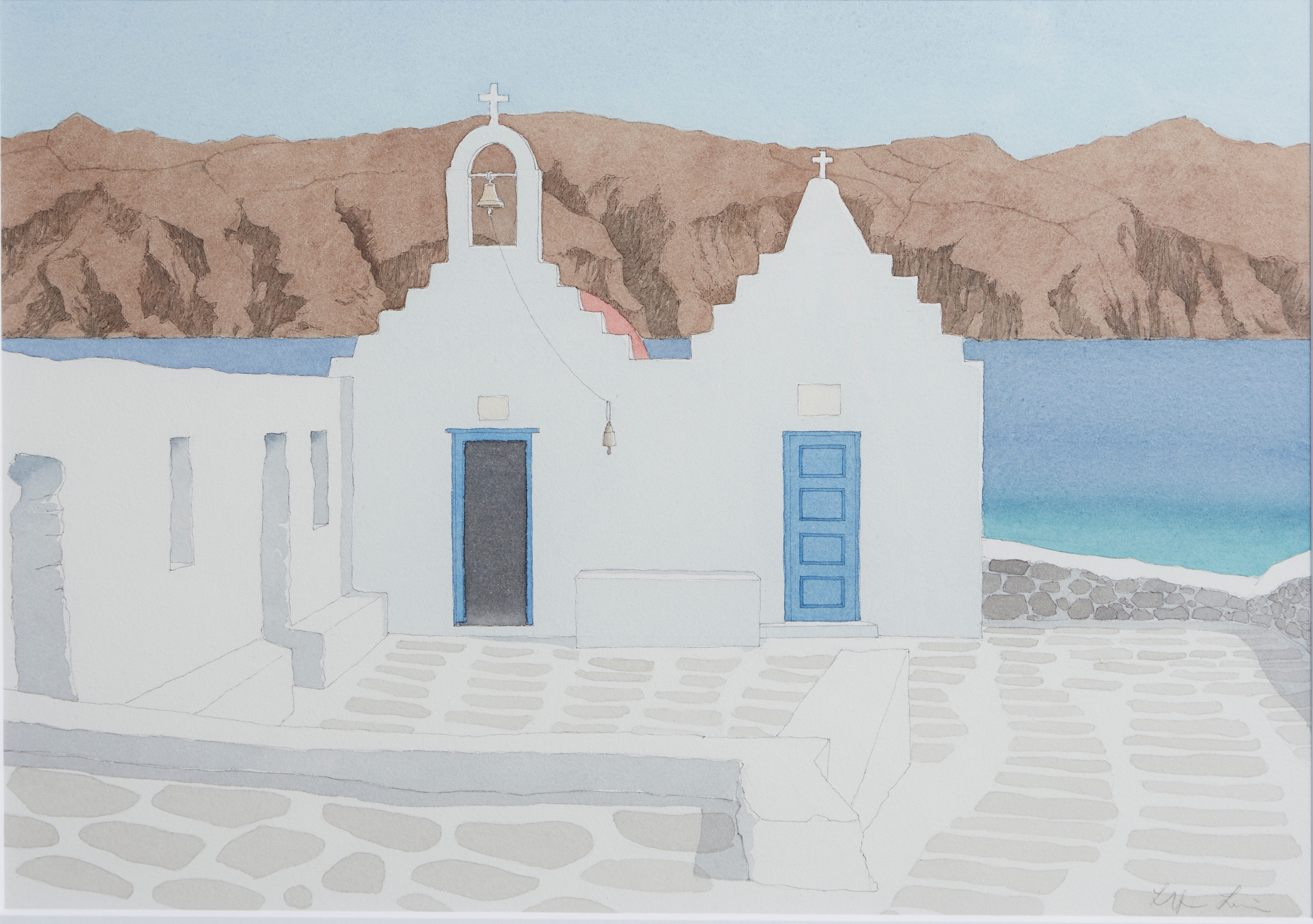3975581. UNBEKANNTE*R KÜNSTLER*IN. Kapelle am Meer / Mykonos (2).