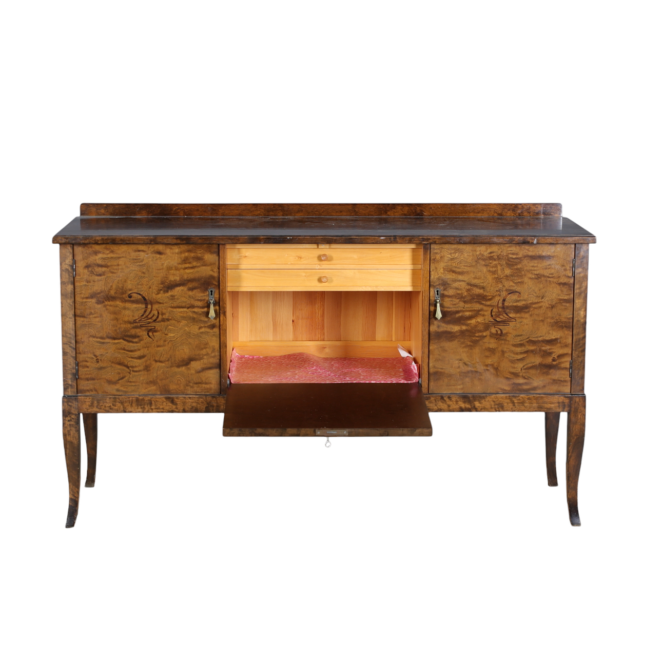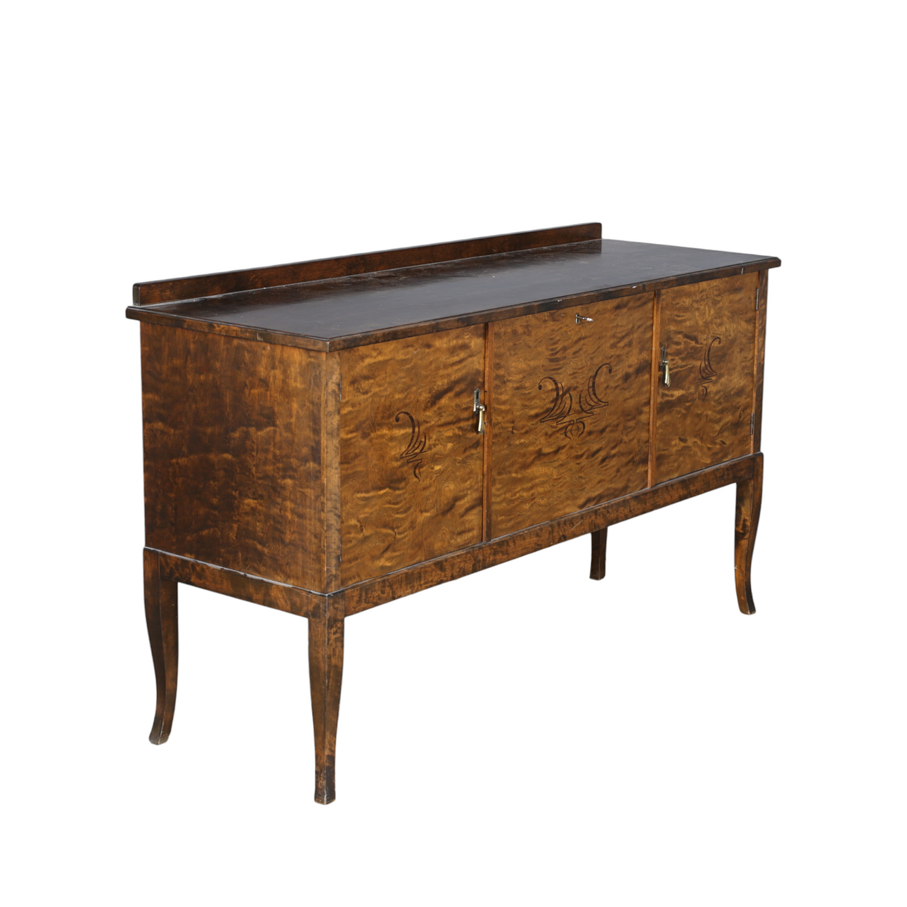 3978160. Holzbuffet mit Intarsienbewohnern, 20. Jahrhundert.