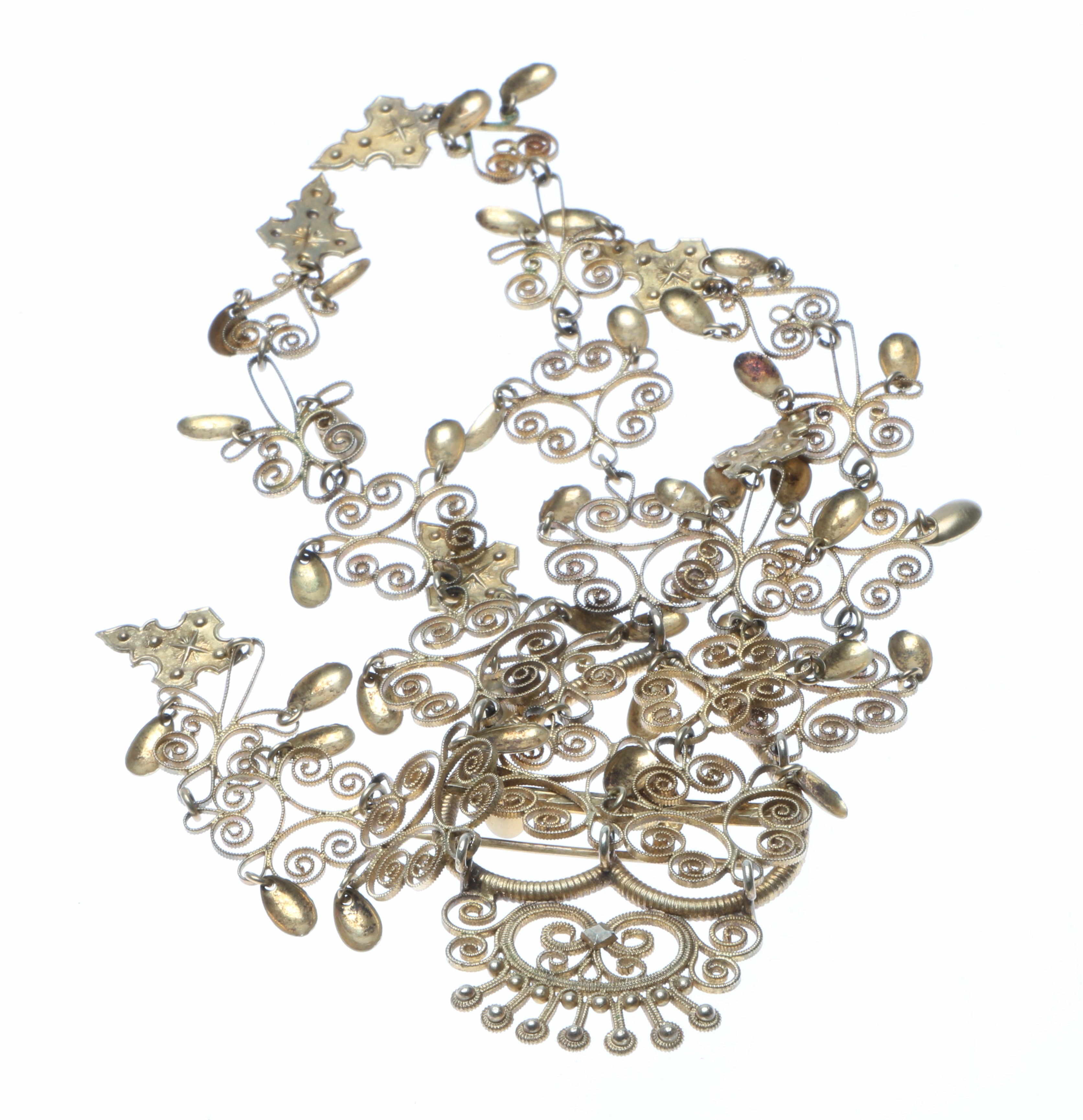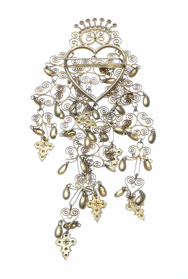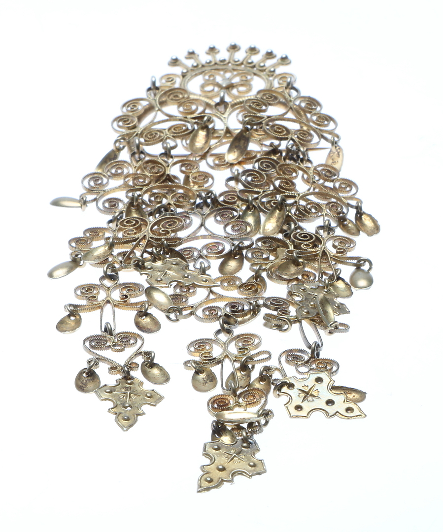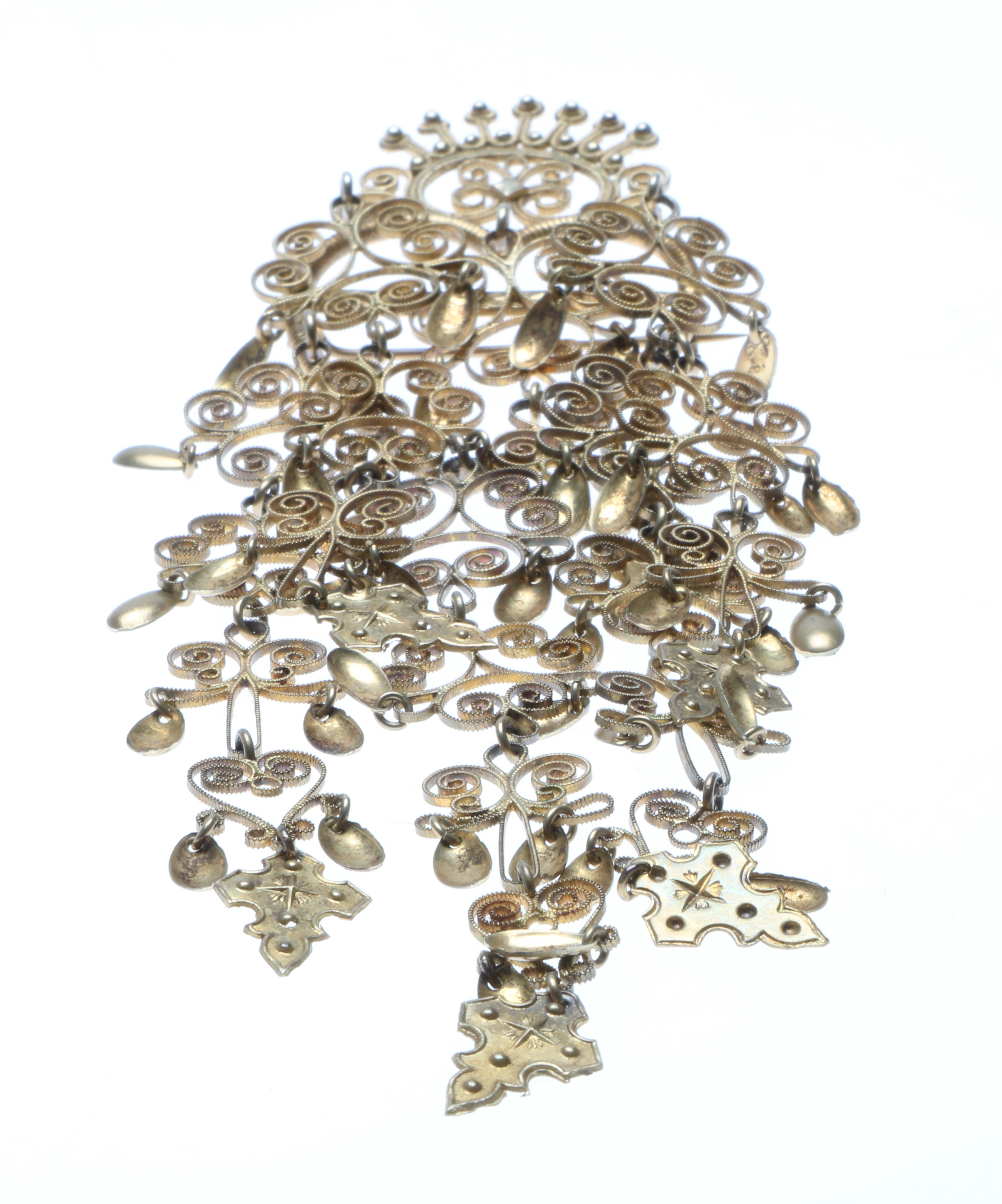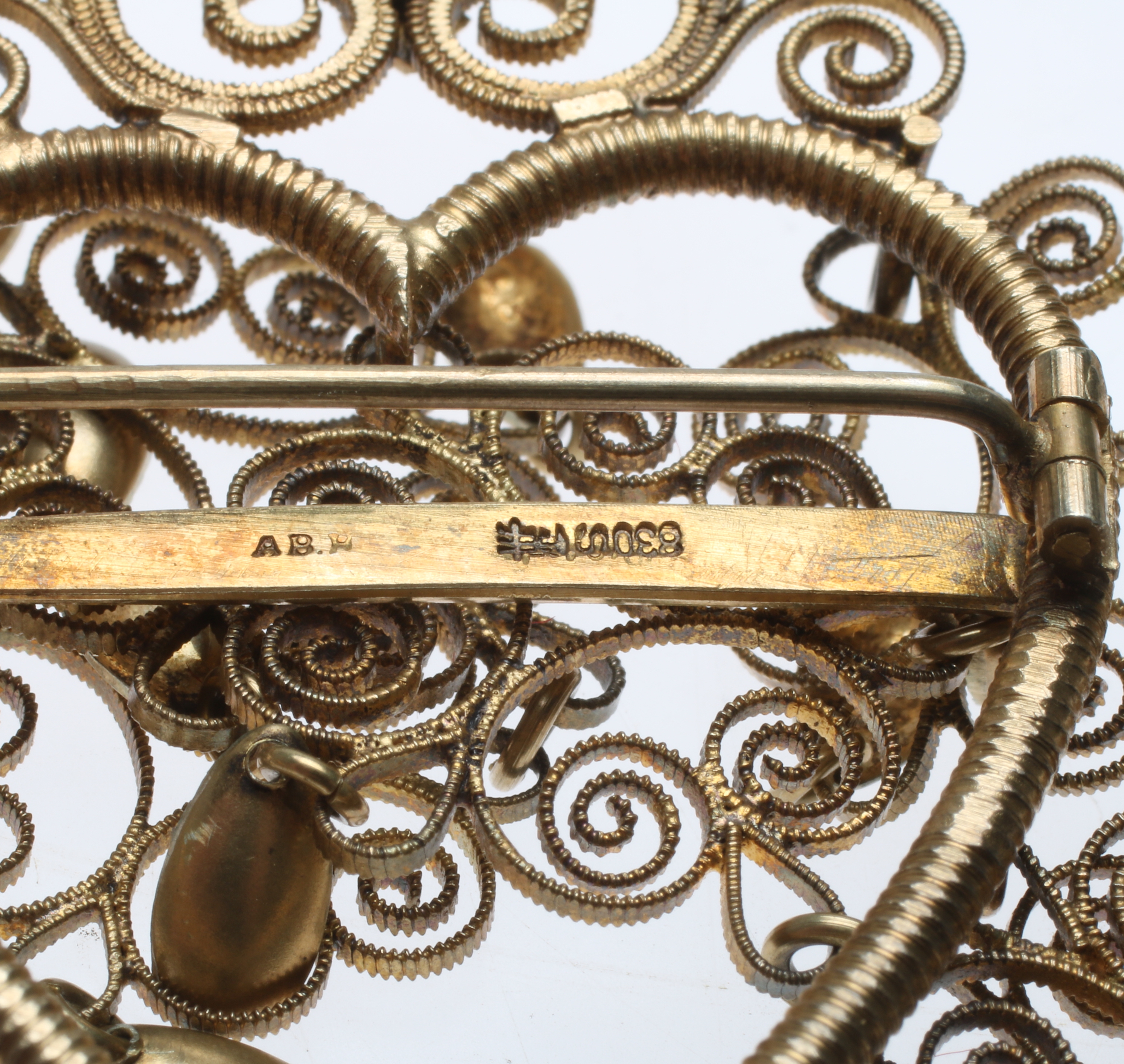 398703. BROSCHE, Filigranarbeit, 830er Silber.
