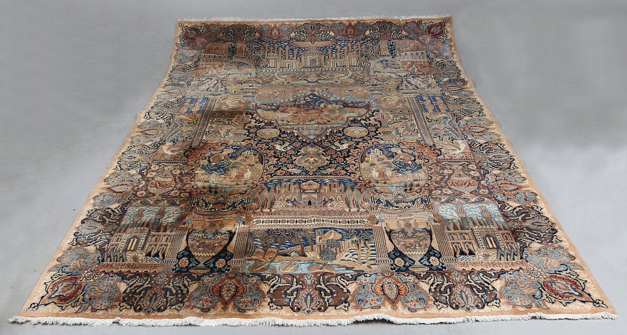 3988857. Figuraler Orientteppich aus Kaschmir, ca. 383x301 cm.