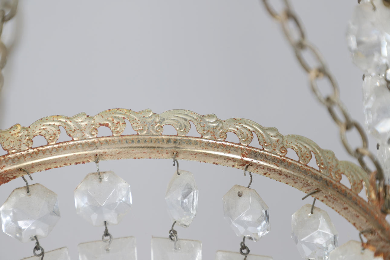 DREI ANTIKE DECKENLEUCHTEN MIT TROPFENGLANZ.