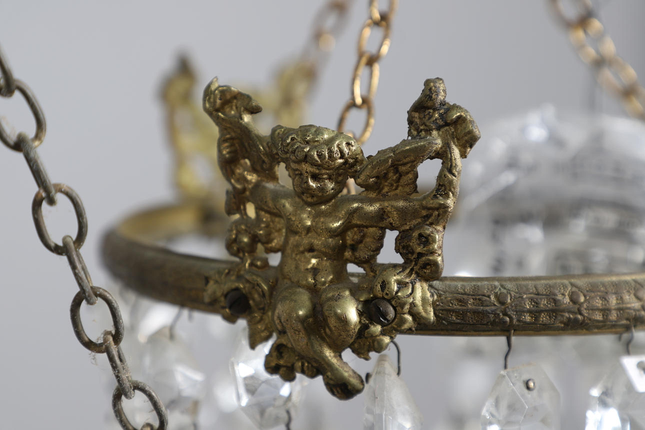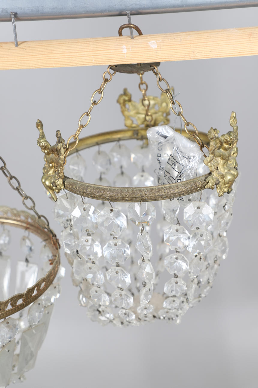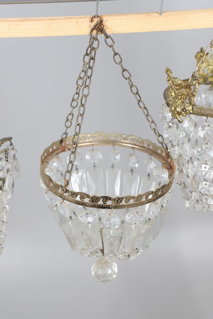 3995341. DREI ANTIKE DECKENLEUCHTEN MIT TROPFENGLANZ.