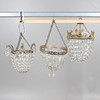 Drei verschiedene Deckenleuchten mit Fallglanz, jeweils mit Ketten zum Aufhängen.