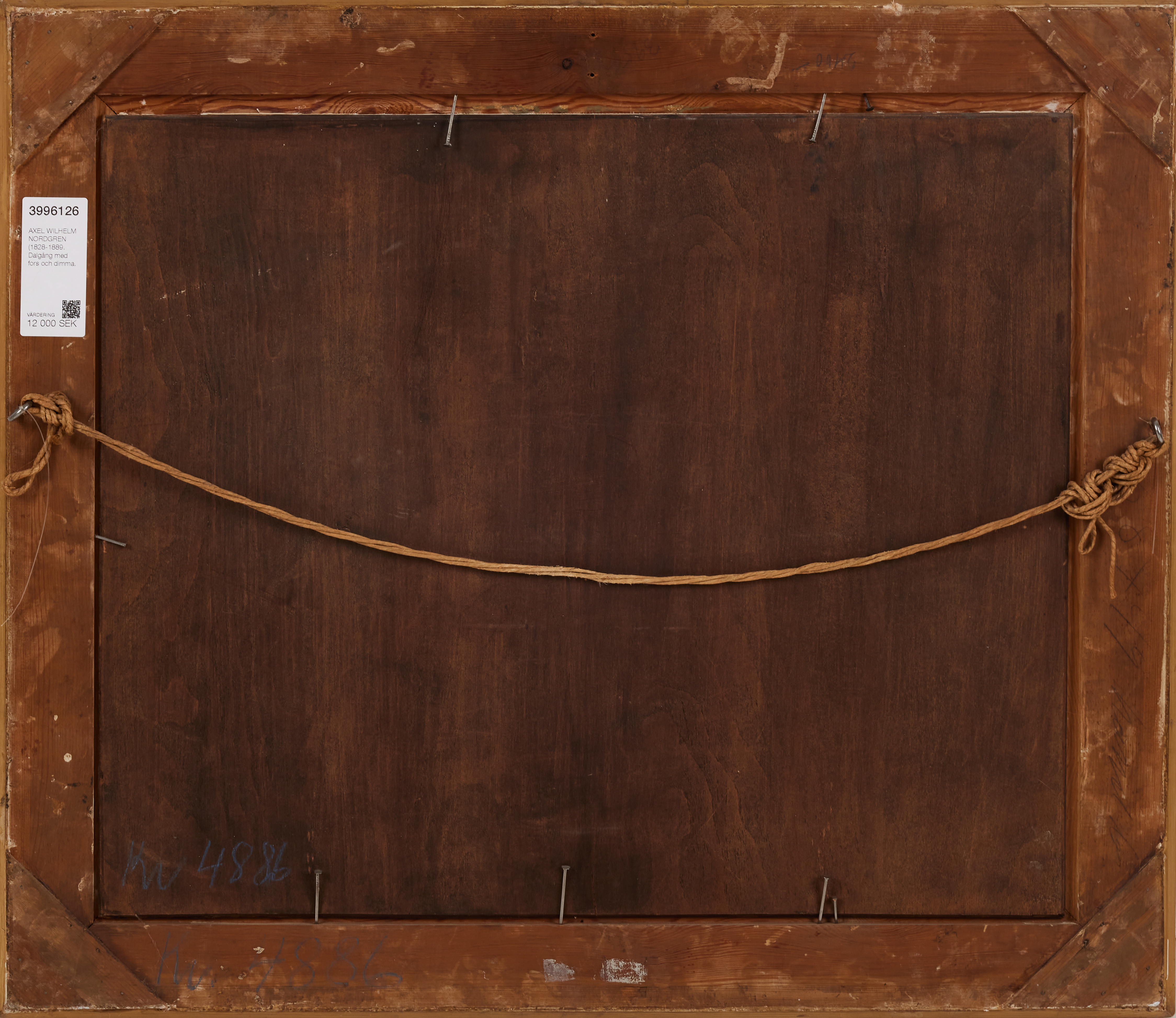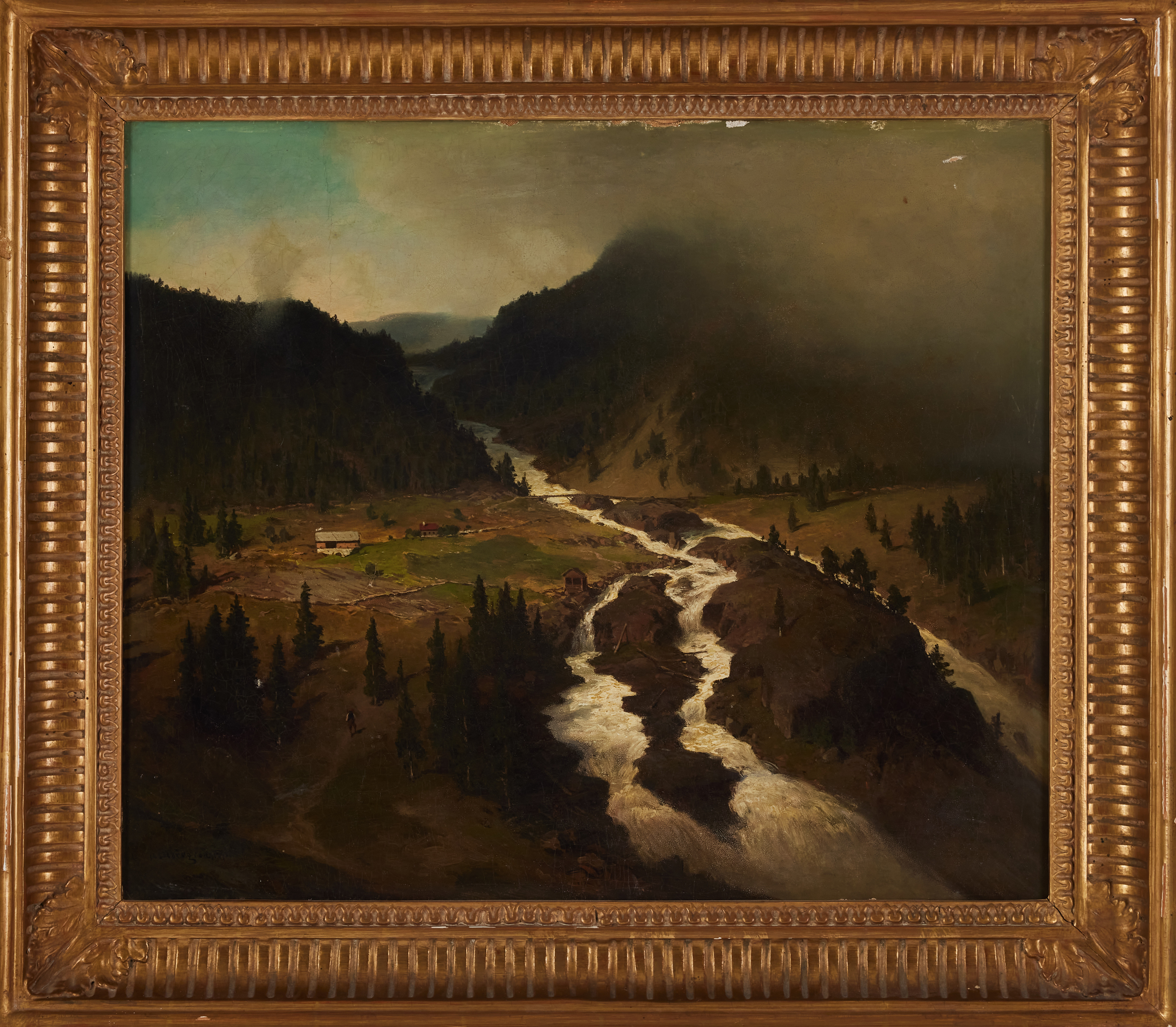 3996126. AXEL WILHELM NORDGREN (1828-1889. Tal mit Stromschnellen und Nebel.