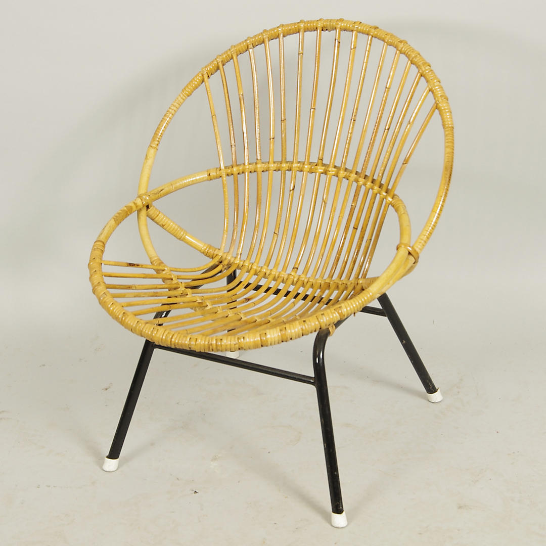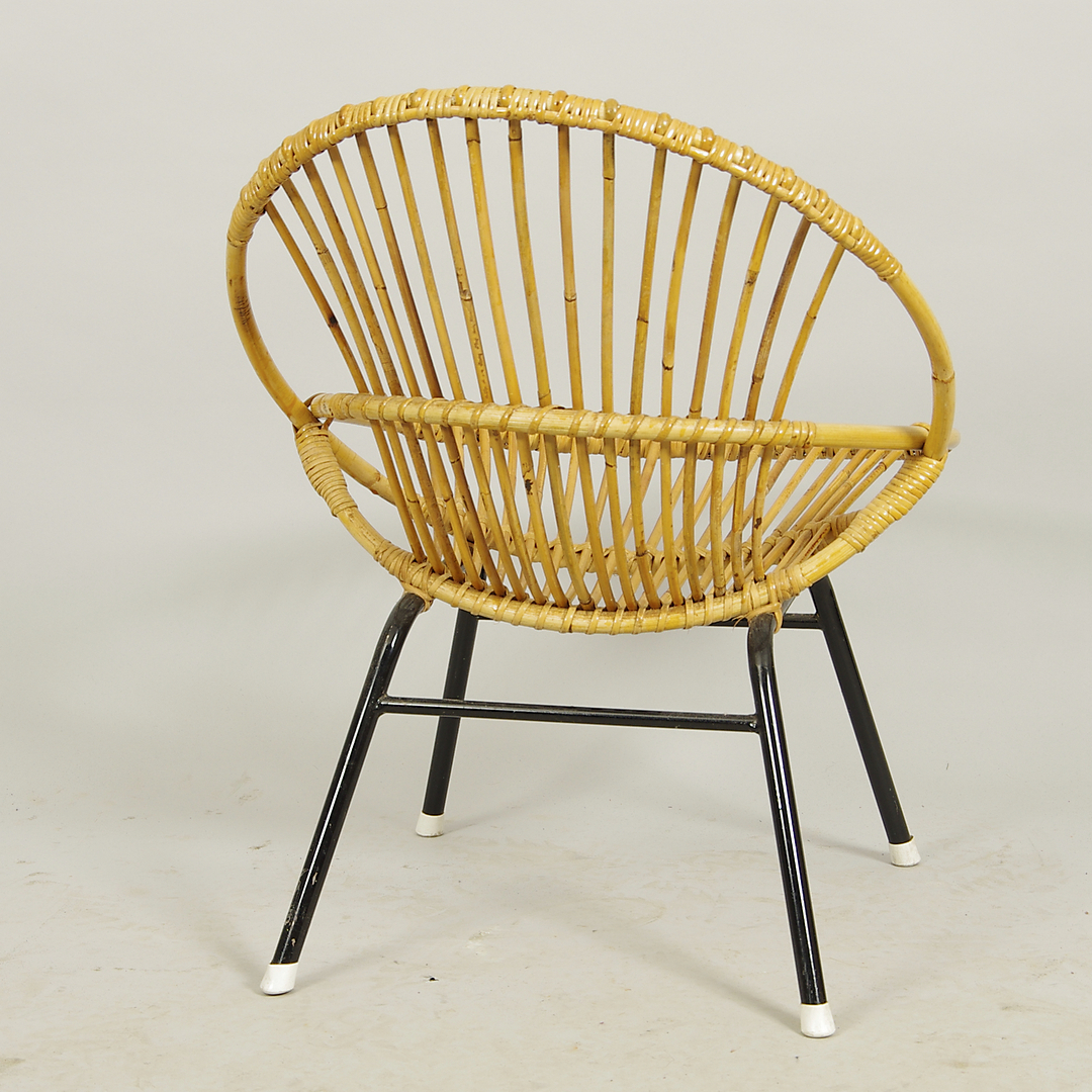 399841. SESSEL, Rattan mit schmiedeeiserner Basis.