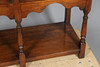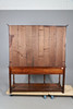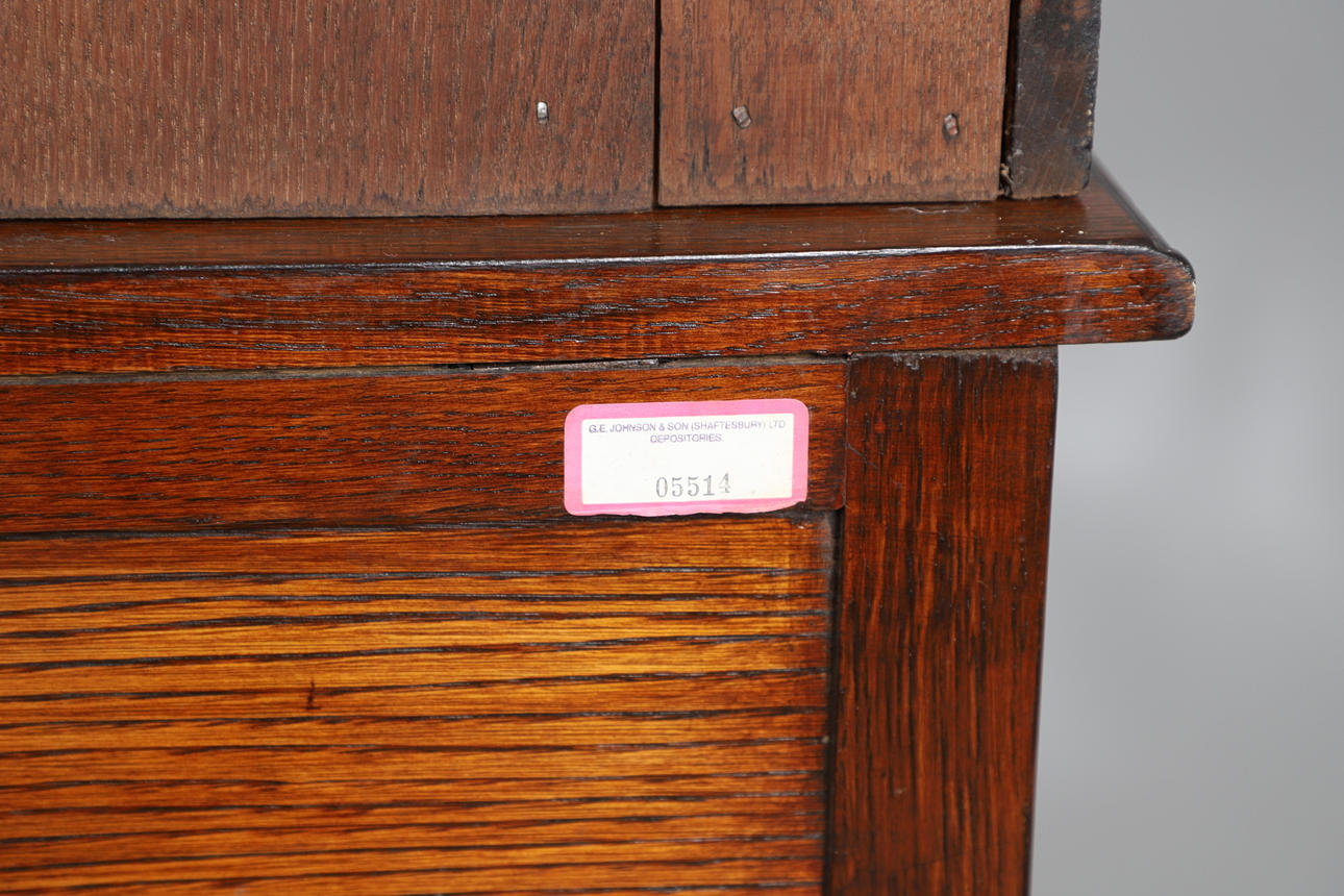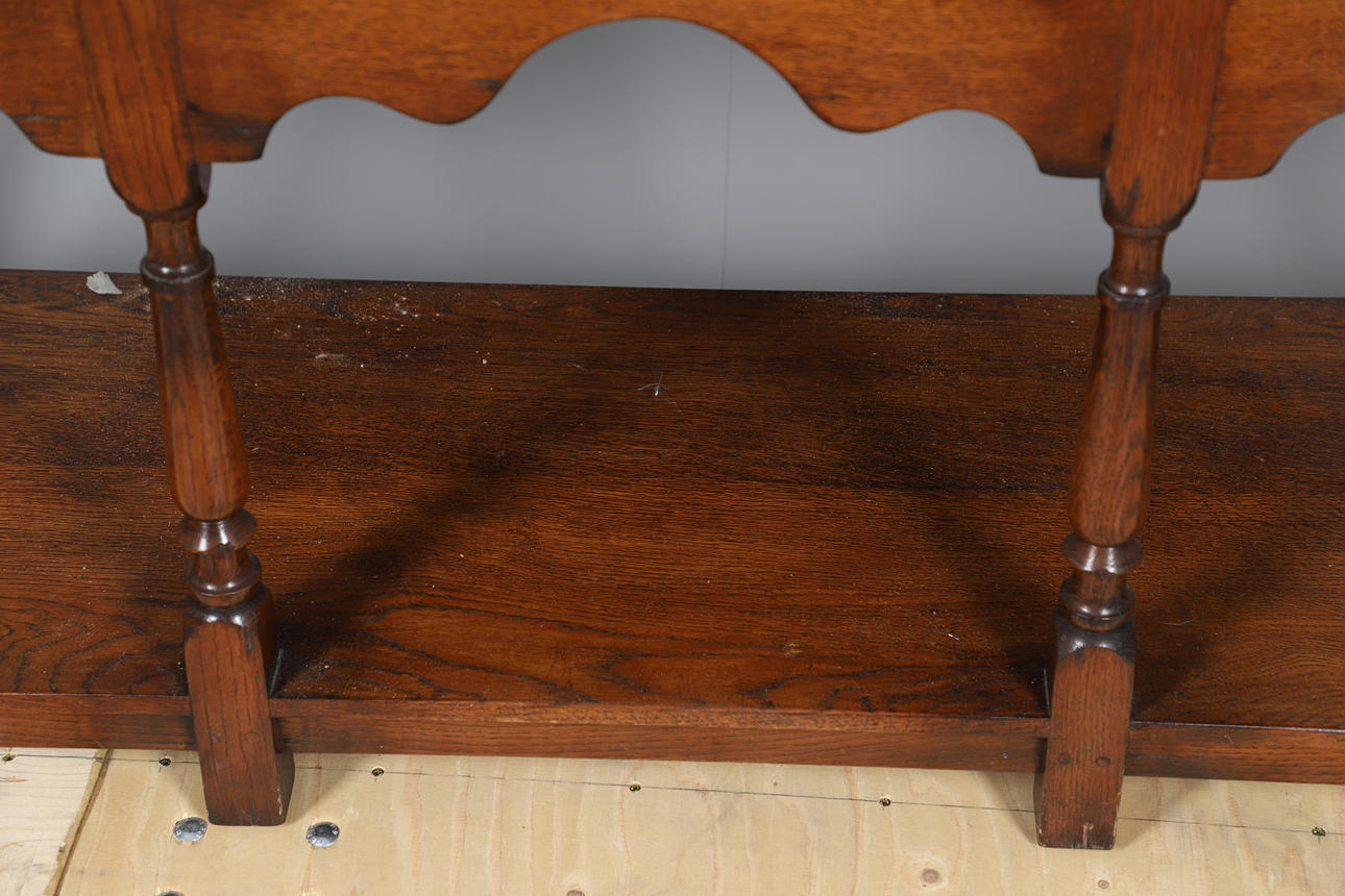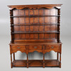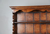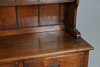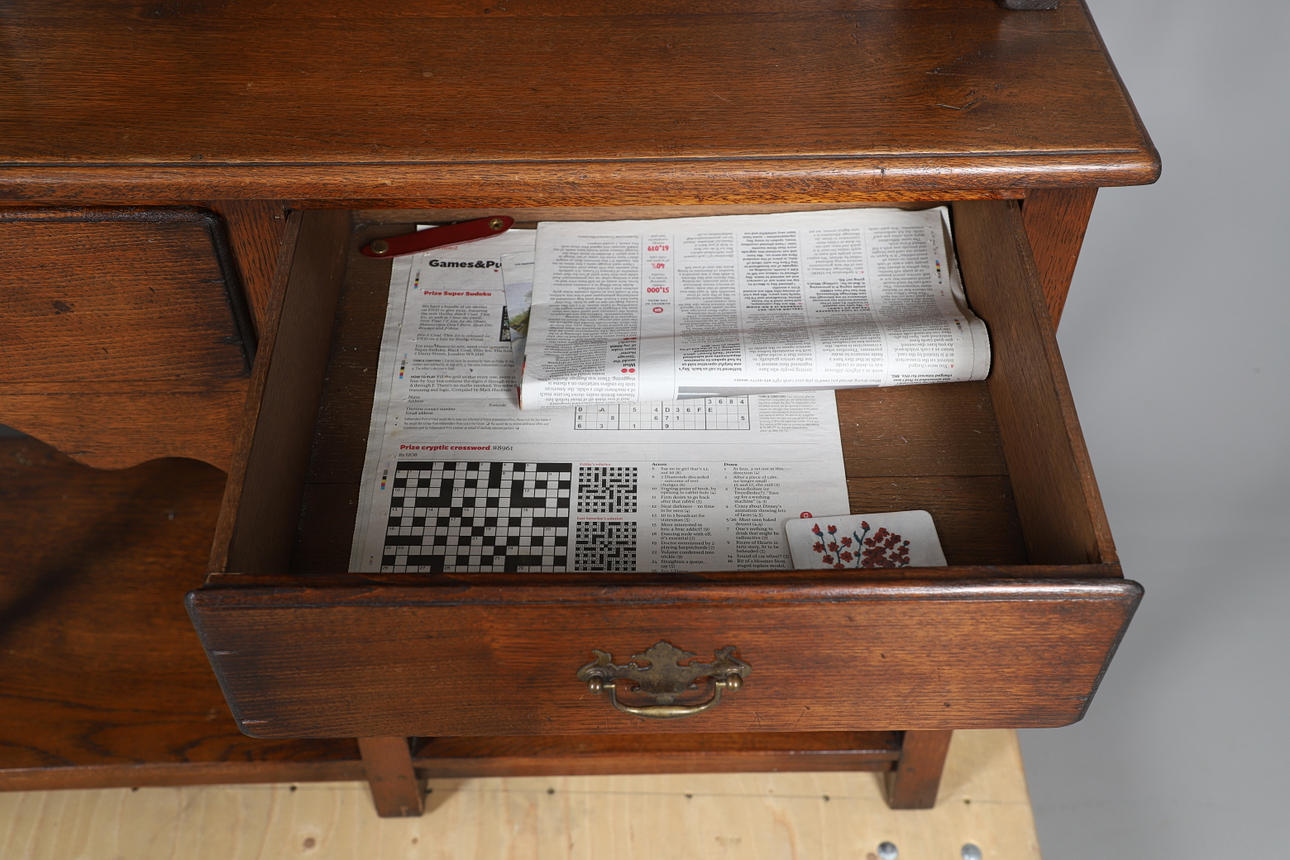 Eine große Kommode aus Eichenholz, der obere Teil mit drei Regalen und einer getäfelten Rückseite, der untere Teil mit drei Schublade, einer geformten Schürze und gedrehten Stützen. 190 cm hoch, 155 cm breit an der breitesten Stelle.