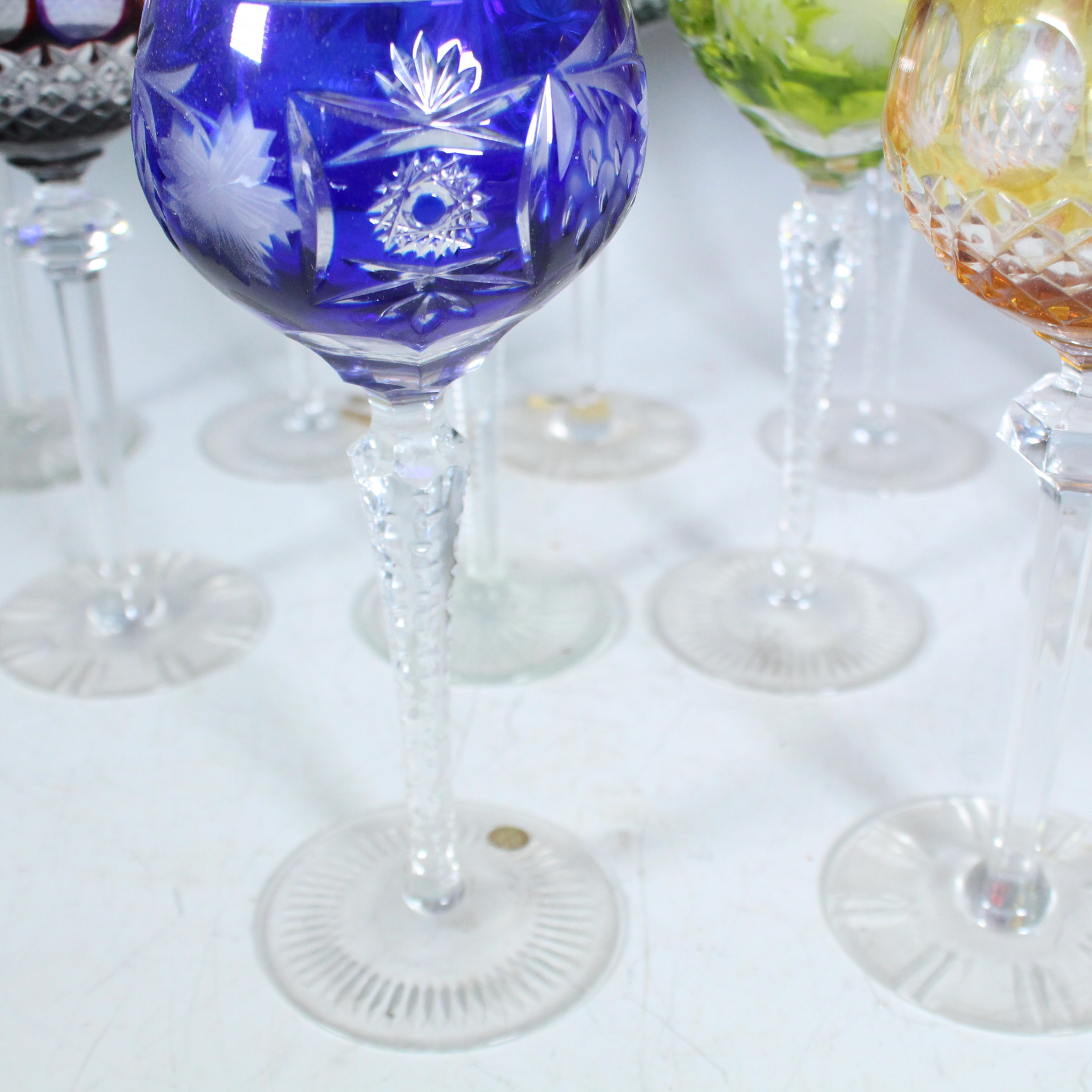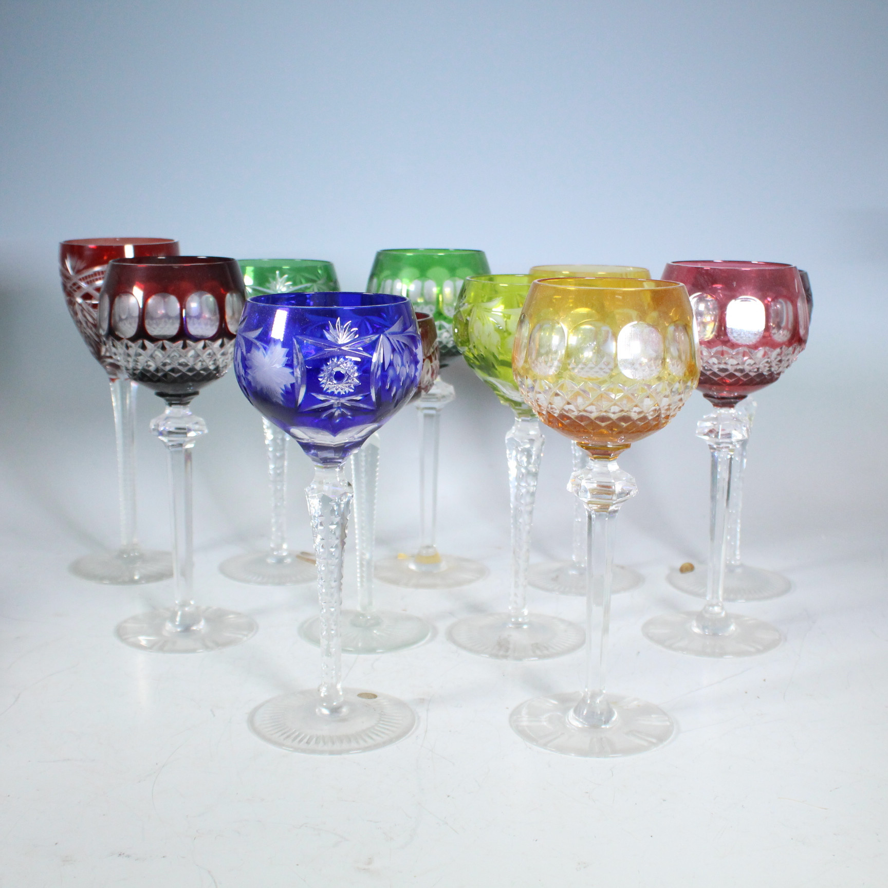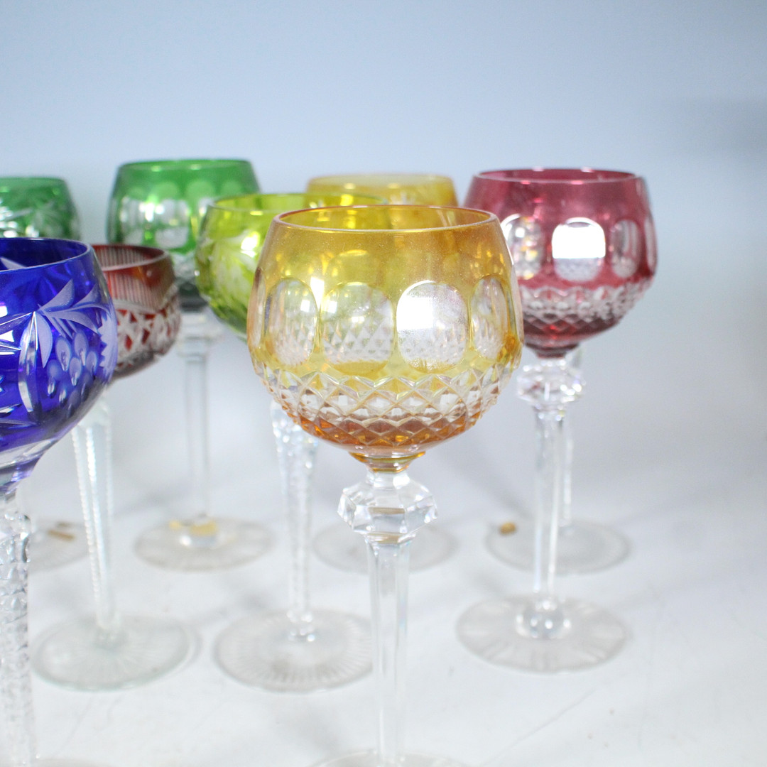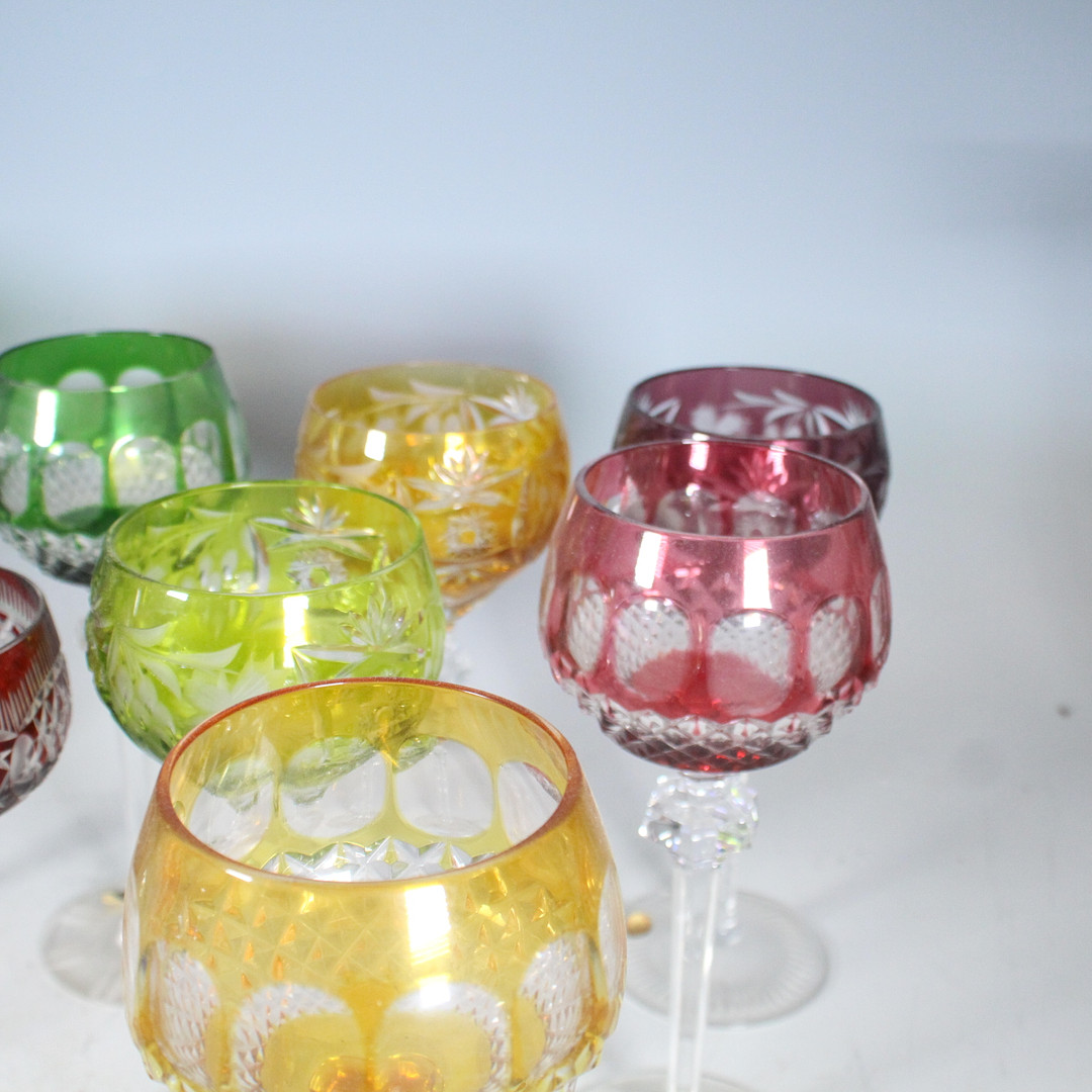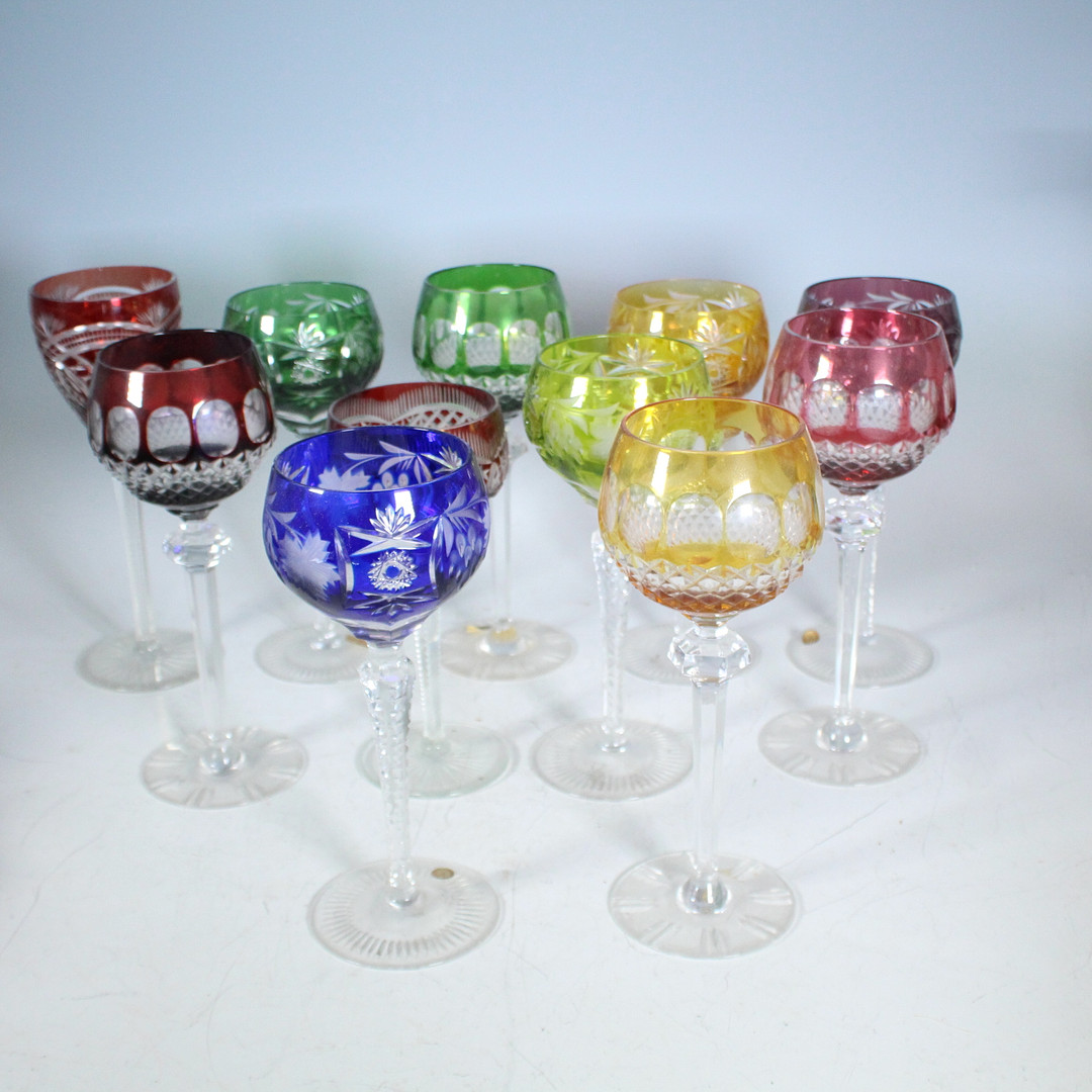 4002909. 11 Römergläser, Kristallgläser, Bunt.