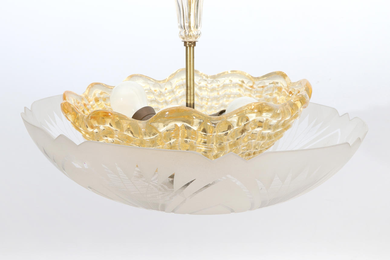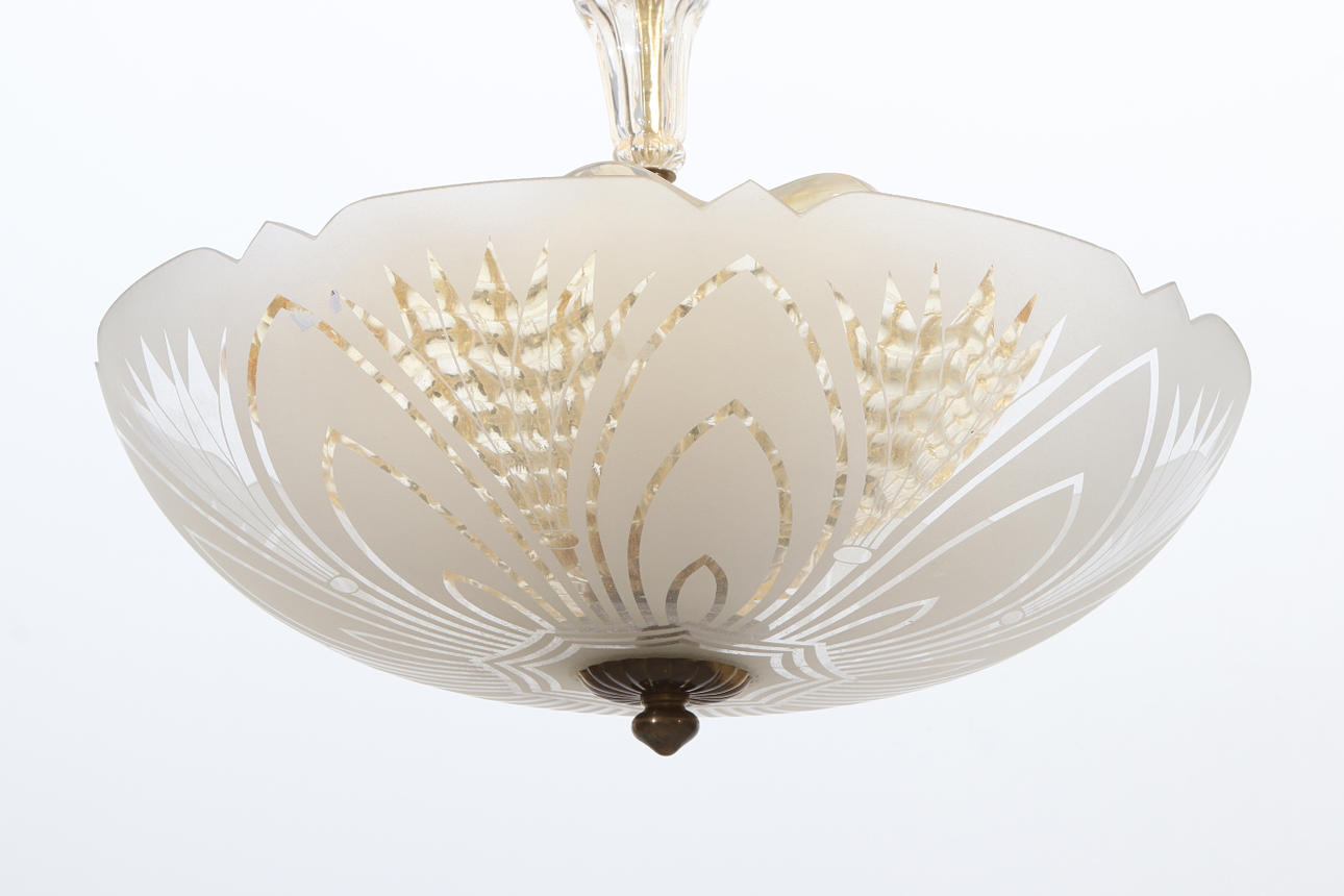 4013510. DECKENLEUCHTE. Glas und Messing. Orrefors, 1940er/50er Jahre.