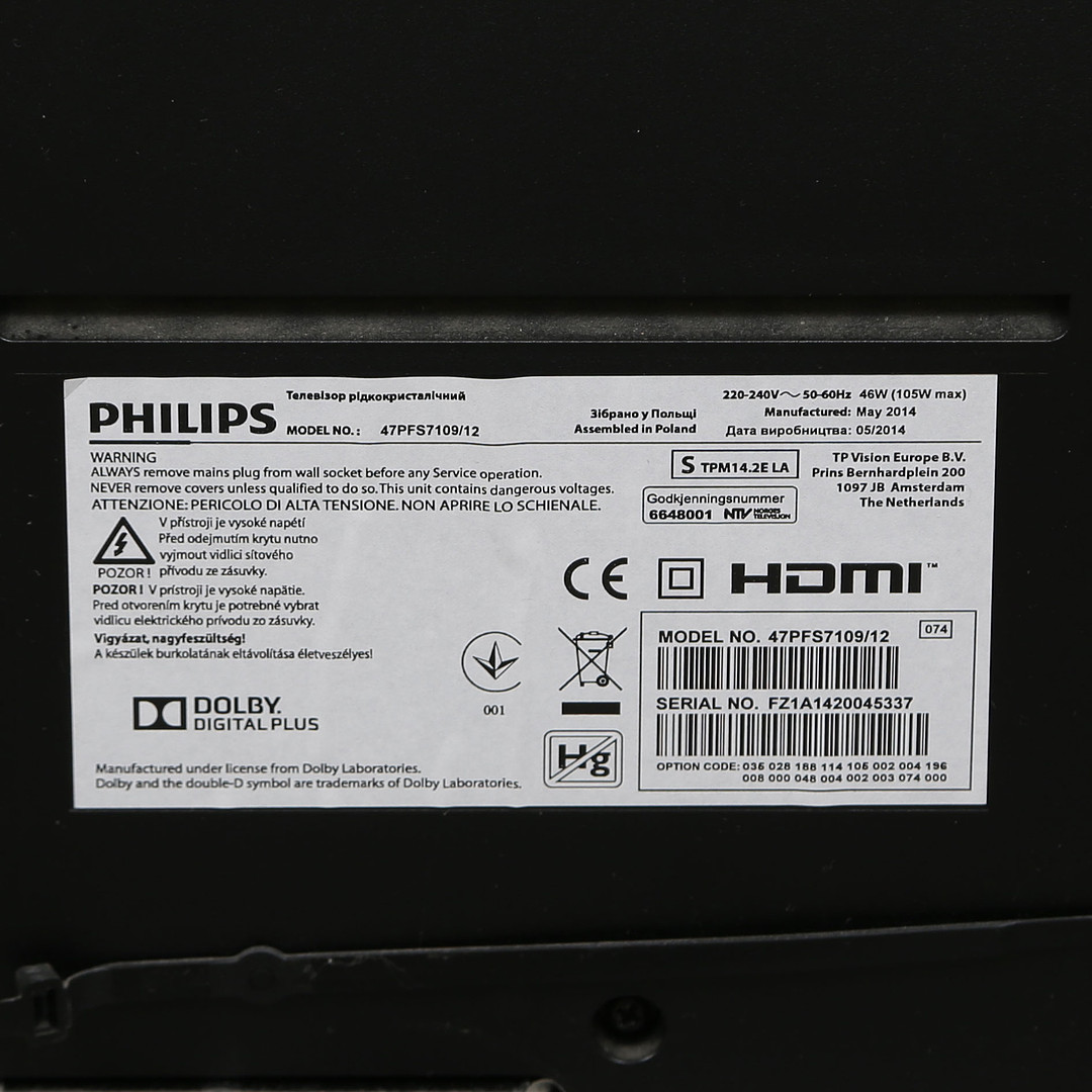 4016208. FERNSEHER, PHILIPS, 47 ZOLL.