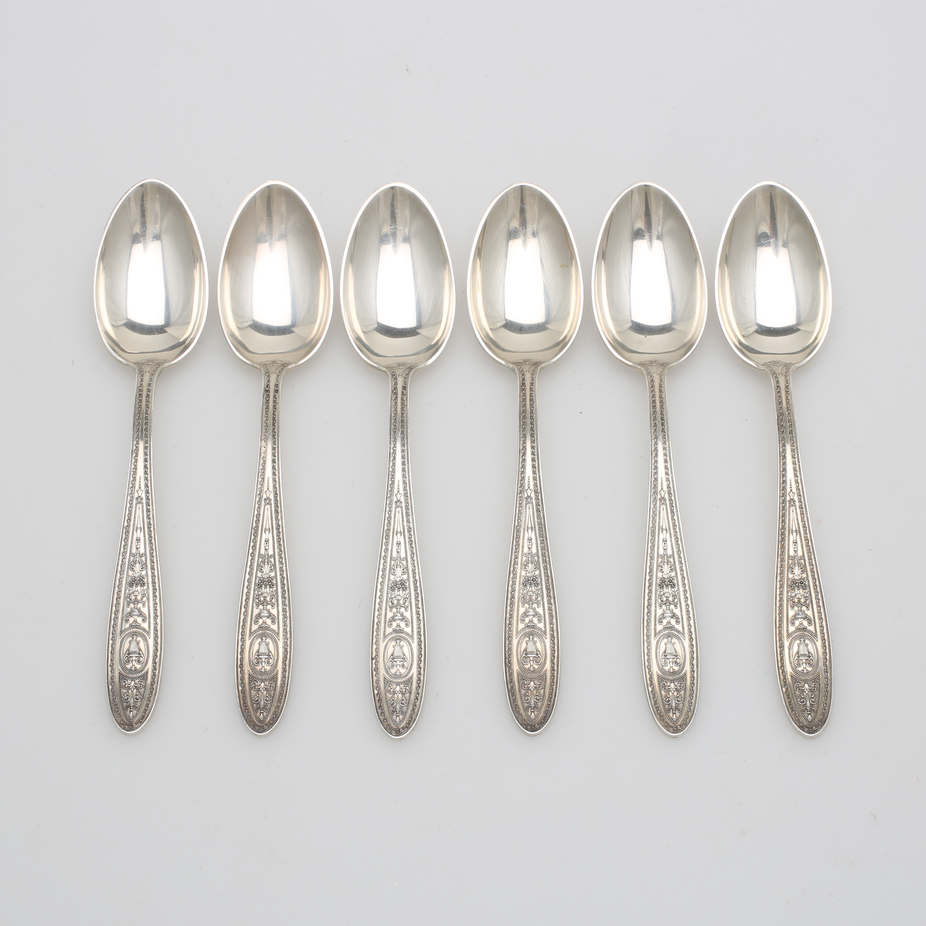401684. LÖFFEL, 6 Stück, Sterlingsilber, Gewicht 187 Gramm.