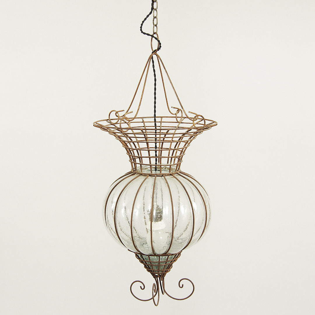 402365. DECKENLATERNE, Schmiedeeisen/Glas, Ende 1900.