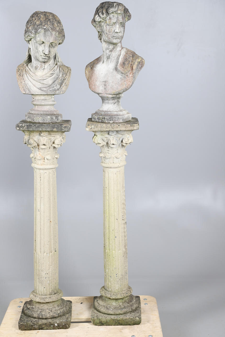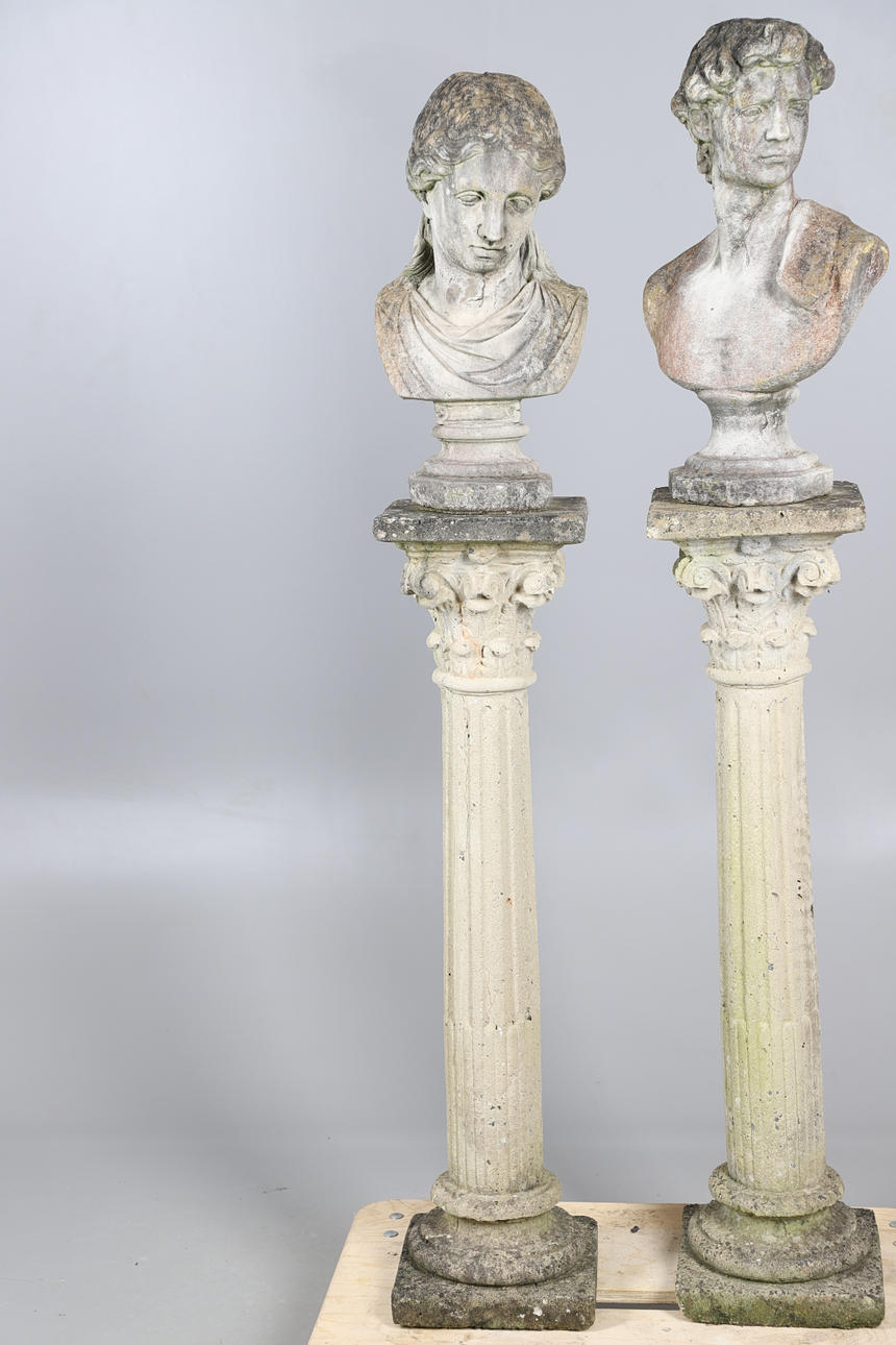 4031454. EIN PAAR REKONSTITUIERTER STEINBÜSTEN AUF KORINTHISCHEN SÄULEN.