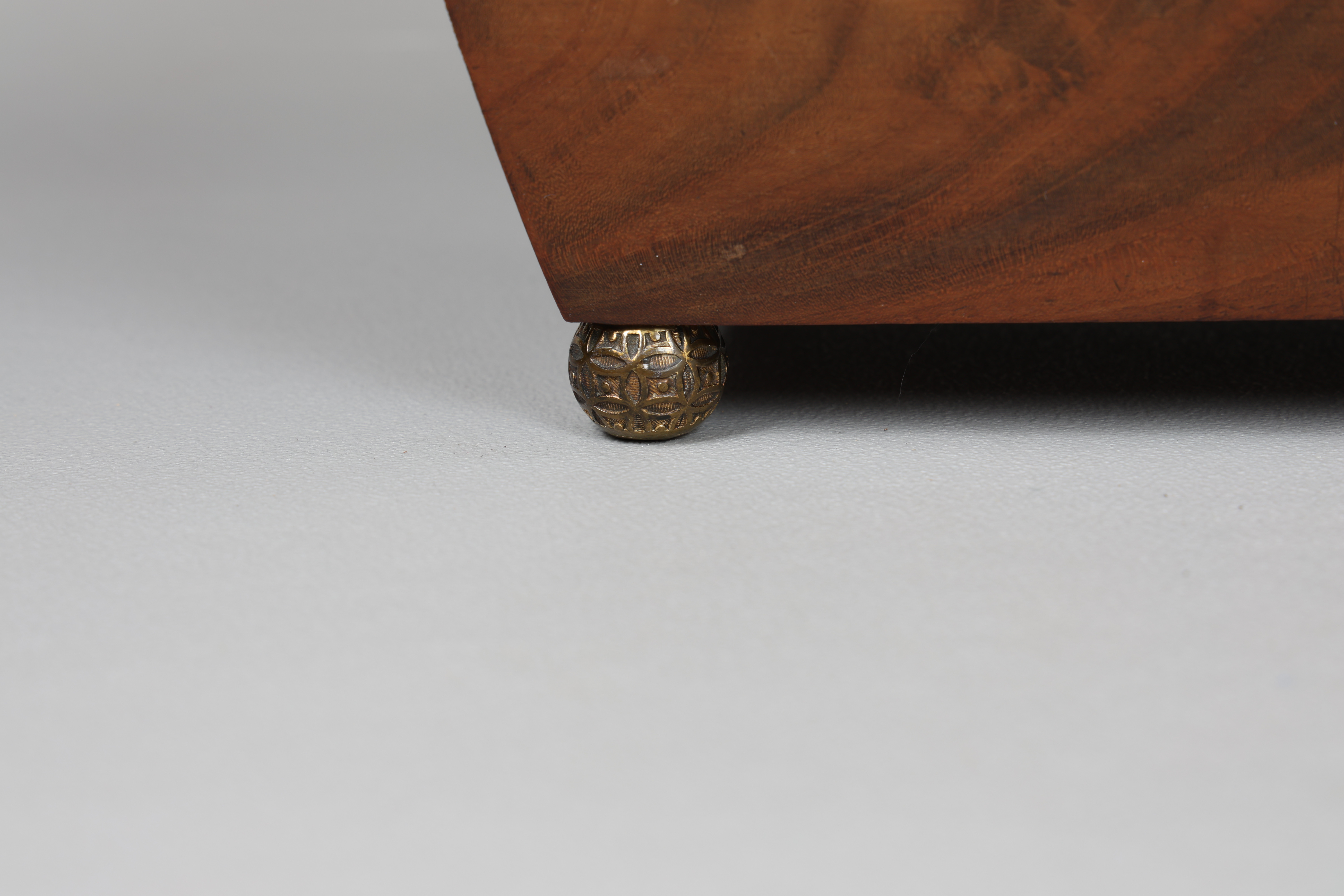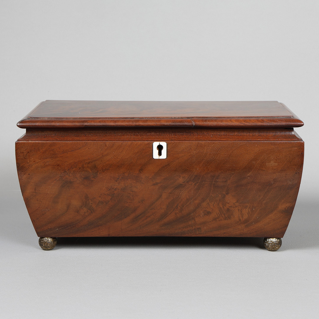 4035243. EINE GEORGE III TEEDOSE AUS MAHAGONI.