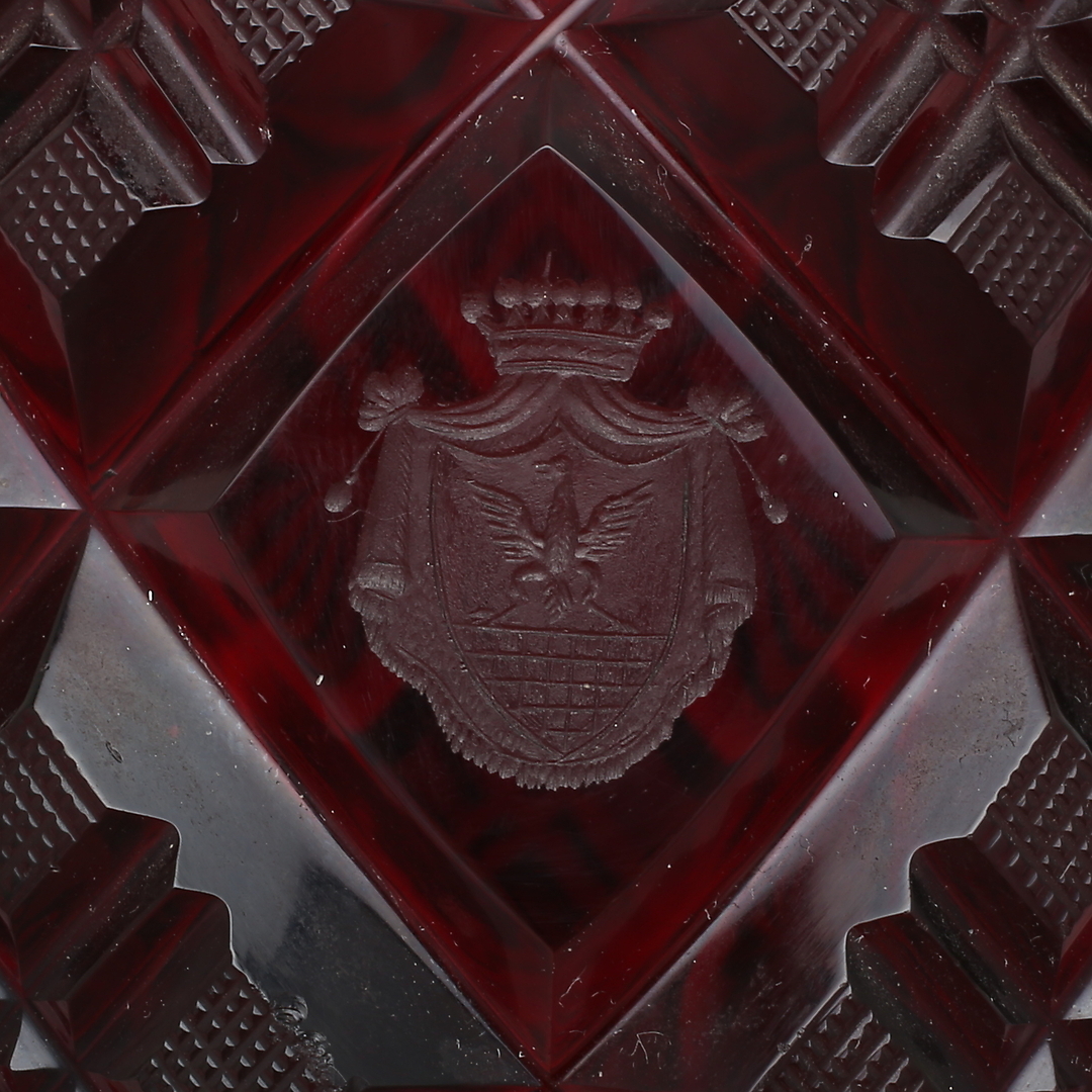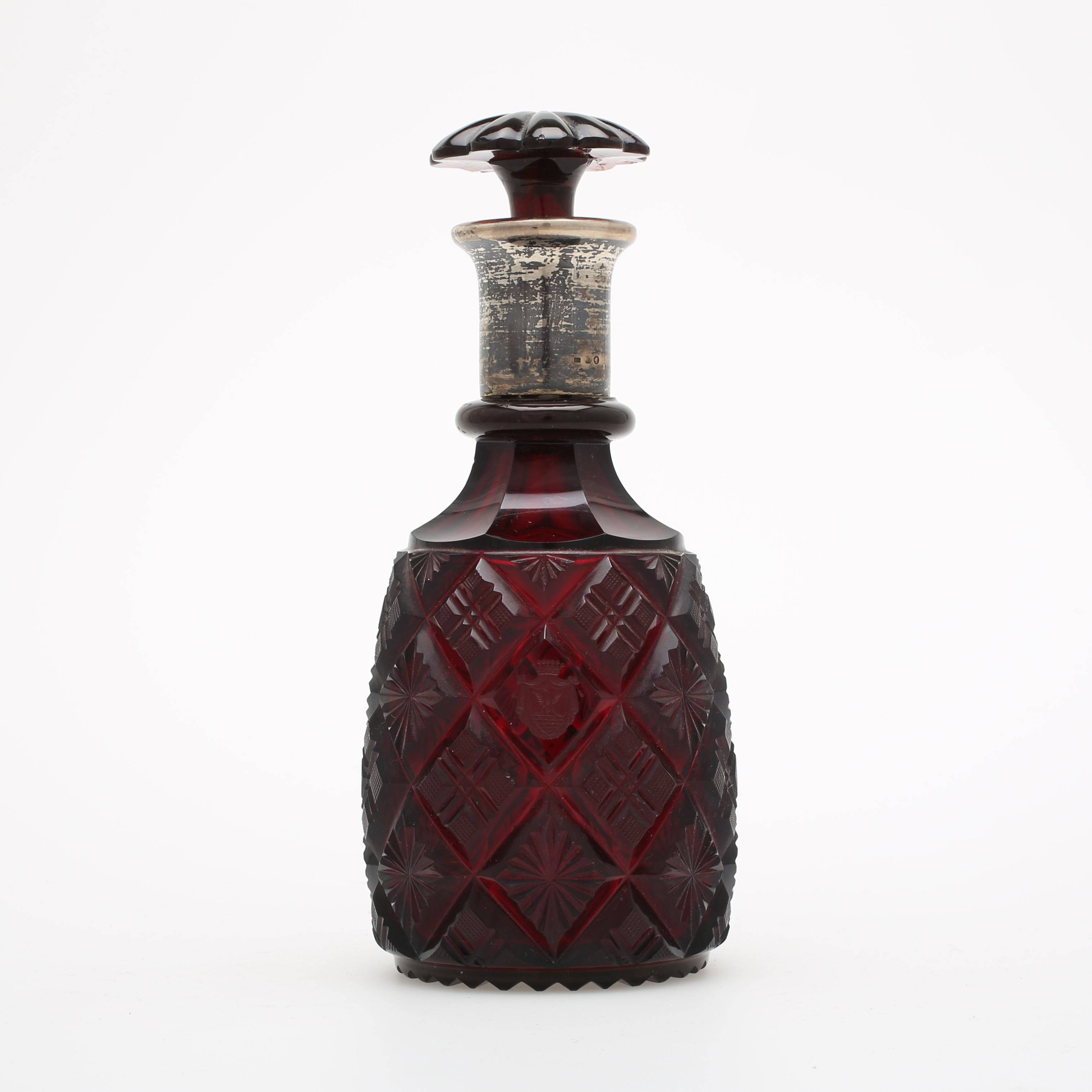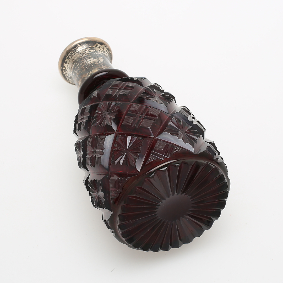 403565. KARAFE, geschliffenes Glas mit silbernem Hals.