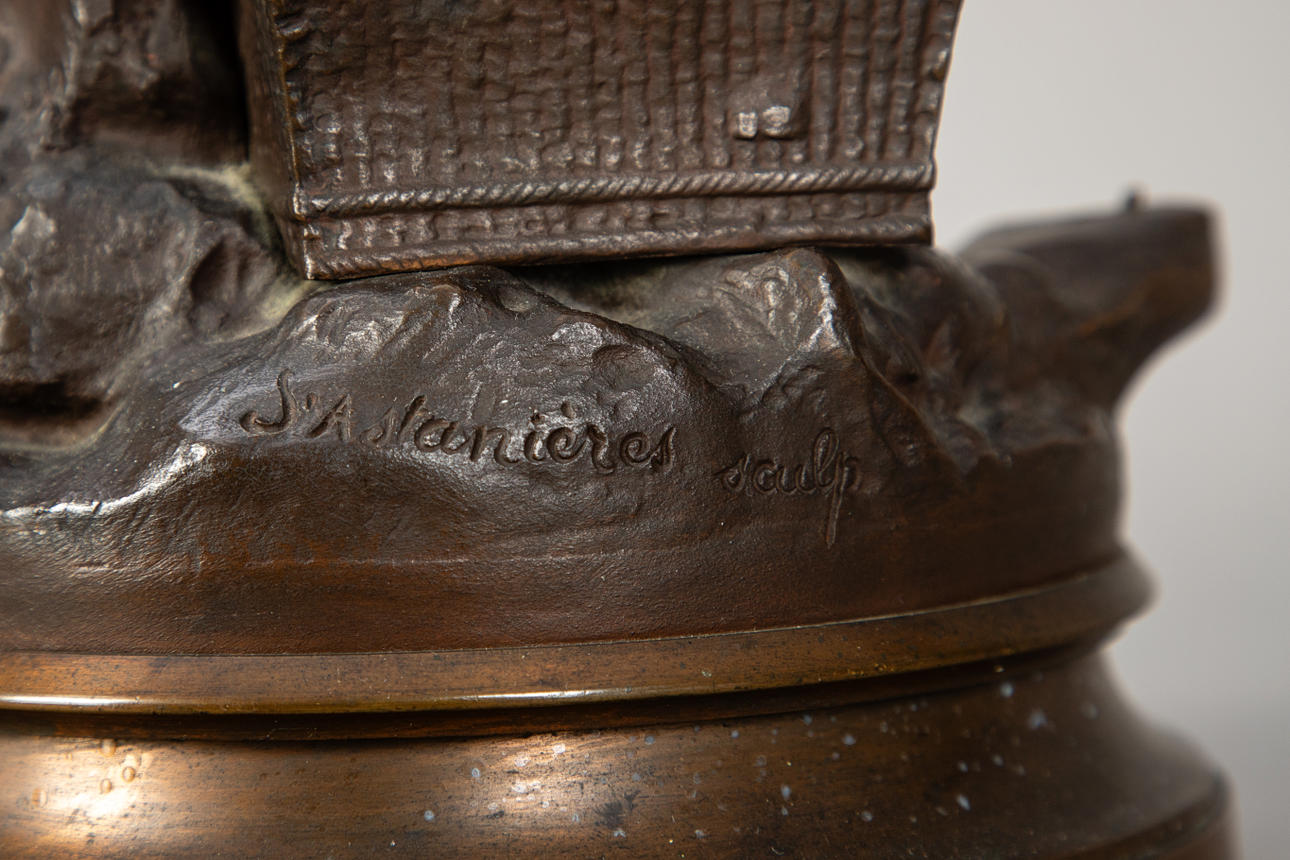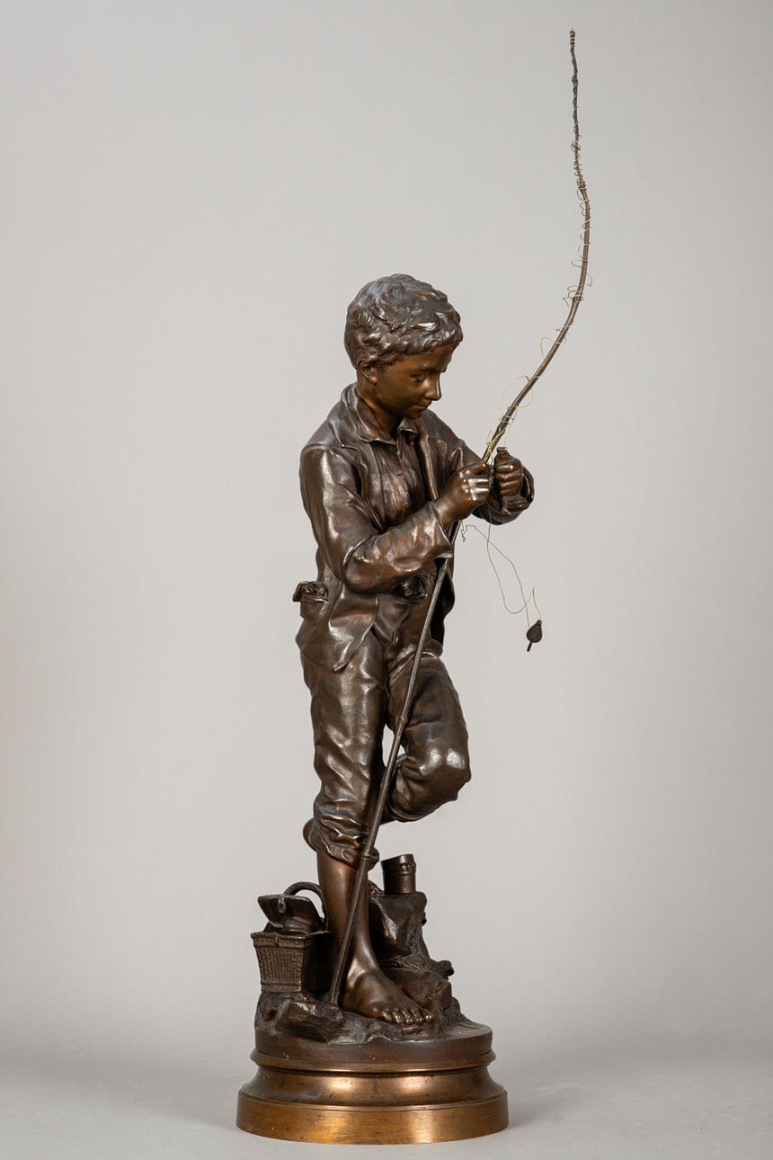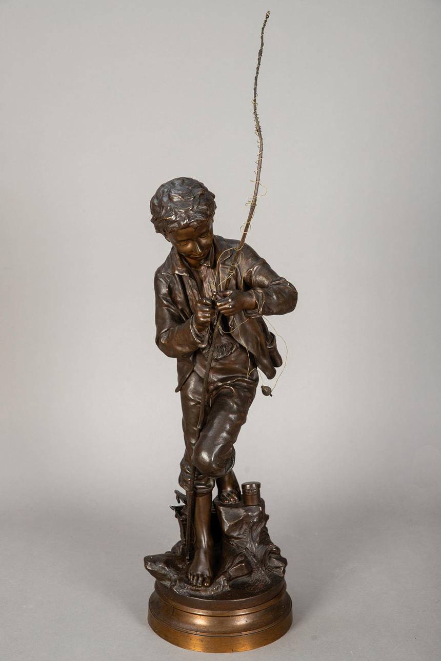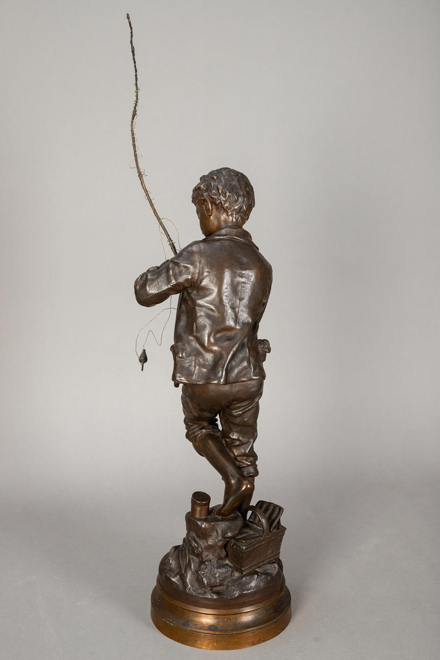 Eugène Nicolas Clément d'Astanières (1841-1917), Le jeune Pecheur, Bronze mit brauner Patina, rückseitig signiert 'd'Astanières sculp', Höhe ca. 64 cm (mit Angel ca. 84 cm).